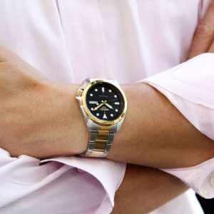 ساعت مچی سیکو مدل SRPE60K1سیکو، برندی معروف و محبوب در زمینه ساعتهای مچی و تجهیزات وابسته به آن می باشد. این شرکت در سال 1881 توسط البرتو سیکو در شهر کوماتو، ژاپن تأسیس شد و از پیشتازان صنعت ساعت سازیست.طراحیهای ساعتهای سیکو اغلب ساده، کلاسیک و البته زیبا هستند. به صورتی است که با طراحیهای مدرن و کلاسیک هماهنگی دارند.ساعتهای سیکو تلفیق هنر، دقت و نوآوریست. سیکو را می توانید به عنوان نماد سلیقه و اعتبار بشناسید.هر محصول، یک داستان منحصر به فرد از زمان و ذوق طراحی را با خود به ارمغان میآورد. از جنسها و مواد برتر تا طراحیهای شگفتانگیز، هر ساعت سیکو به عنوان یک اثر هنری برجسته شناخته میشود. همچنین، فناوریهای پیشرفته و دقت فوقالعاده در ساعتهای سیکو اطمینان میدهند که شما همواره در کنترل زمان خود باشید.با مجموعهای از ساعتهای متنوع و جذاب، سیکو تجربهای فوقالعاده از زمان و استایل را برای شما فراهم میکند. اکنون، با محصولات سیکو، زمان را به یک سفر استثنایی از زیبایی و علم تبدیل کنید.سیکو 5 سری ساعت های مکانیکی اتوماتیک هستند که توسط شرکت ژاپنی ساعت سازی سیکو تولید می شود. سری Seiko 5 از سال 1963 به بازار آمد. ارائه ساعتهای مقرون به صرفه، قابل اعتماد و بادوام با تمرکز بر عملکرد و کاربردی، ویژگی های خاص این سری از ساعت هاست.ویژگی های کلیدی ساعت مچی سیکو مدل SRPE60K1جنس قاب: استیلجنس بند: استیلجنس شیشه: هاردلکستکنولوژی موتور: اتوماتیک