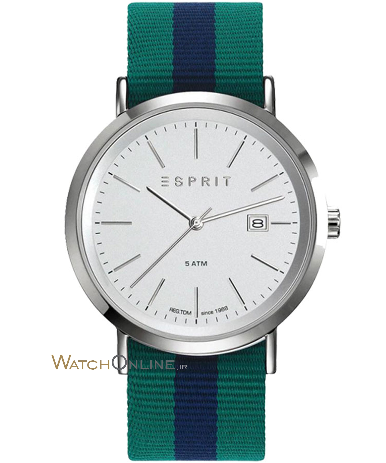 دسته: esprit, آمریکا, بند پارچه, بند سبز, تعداد موتور, جنس بند, جنس قاب, رنگ بند, رنگ صفحه, رنگ قاب, ساعت بر اساس برند, ساعت بر اساس جنسیت, صفحه نقره ای, قاب نقره ای, مبدا برند, مردانه, یک موتور