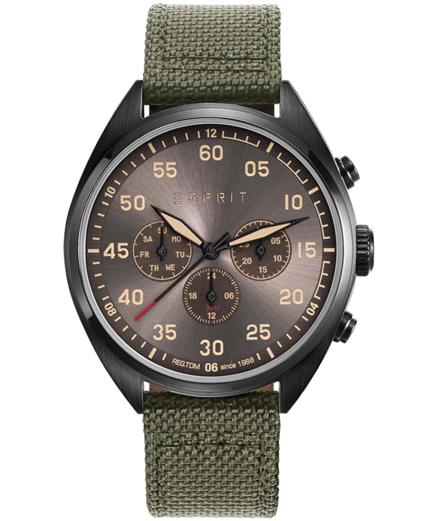 دسته: esprit, آمریکا, بند پارچه, بند سبز, تعداد موتور, جنس بند, جنس قاب, دو موتور, رنگ بند, رنگ صفحه, رنگ قاب, ساعت بر اساس برند, ساعت بر اساس جنسیت, صفحه قهوه ای, قاب مشکی, مبدا برند, مردانه