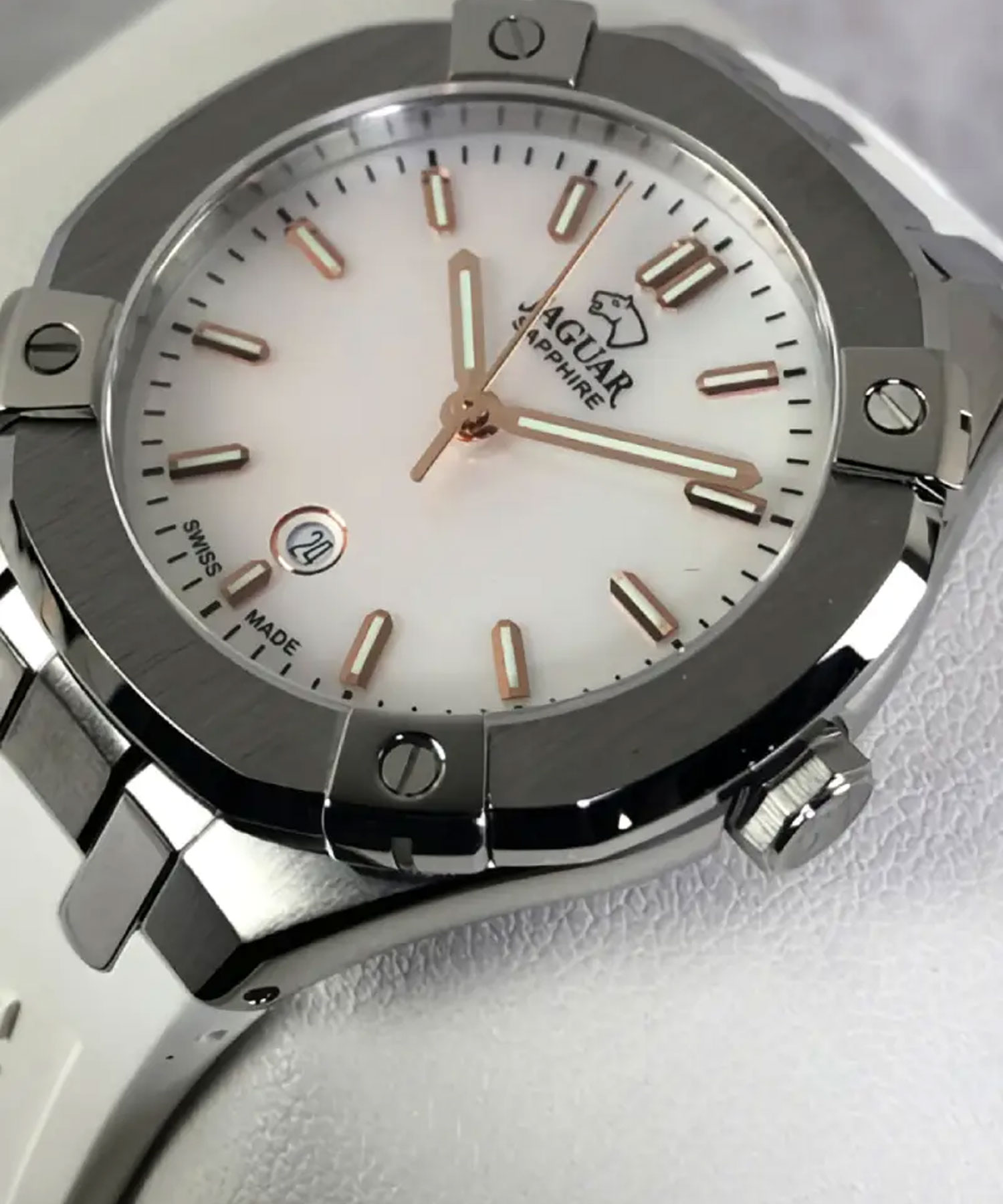 دسته: jaguar, آنالوگ, بند رزین, بند سفید, تعداد موتور, جنس بند, جنس قاب, رنگ بند, رنگ صفحه, رنگ قاب, زنانه, ساعت بر اساس برند, ساعت بر اساس جنسیت, سوییس, صفحه سفید, قاب نقره ای, مبدا برند, نوع ساعت, یک موتور