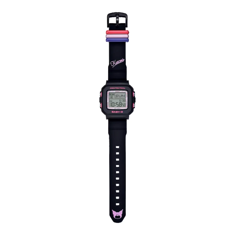 نسخه BABY-G+PLUS KUROMI COLLABORATION MODEL – سالگرد 30 سالگی Baby-Gدارای المانهای Kuromi در بخشهای متفاوت ساعتصفحه نمایش ساعت به صورت پیکسلی با طراحی رتروبستهبندی متفاوت شامل استیکر، هولدر بنفش رنگقابلیت شخصیسازی ساعت با توجه به سلیقه – دارای لوپهای رنگیدر صورت روشنکردن نور پسزمینه، صورت Kuromi نمایان میشودنمایش ساعت به فرمت 12/24 ساعتهزمانسنجی منظم:دیجیتال: ساعت، دقیقه، ثانیه، بعد از ظهر، ماه، تاریخ و روز |