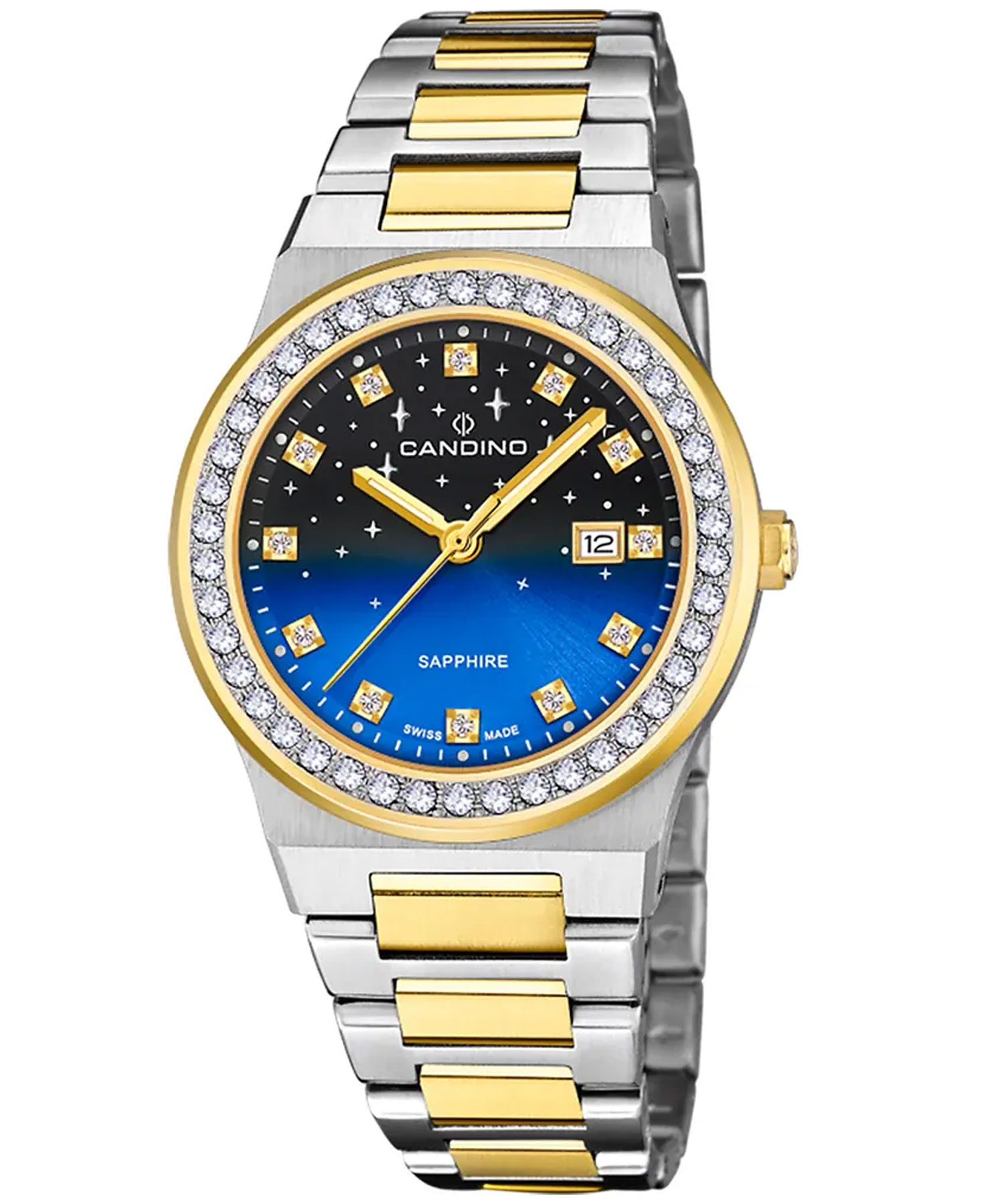 دسته: candino, تعداد موتور, جنس بند, جنس قاب, رنگ بند, رنگ صفحه, رنگ قاب, زنانه, ساعت بر اساس برند, ساعت بر اساس جنسیت, سوییس, صفحه سرمه ای, مبدا برند, یک موتور