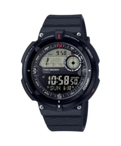 • توضیحات بیشتر مقاوم در برابر ضربه | مقاومت در برابر آب تا عمق 100 متری | نور پس‌زمینه LED (Super Illuminator)، پس‌تاب، رنگ چراغ: سفید | زمان جهانی، 29 منطقه زمانی (48 شهر)، نمایش کد شهر، ساعت تابستانی روشن/خاموش | اطلاعات کره ماه (سن ماه در تاریخ خاص) | نمودار جزر و مد (سطح جزر و مد برای تاریخ و زمان خاص) | کرونومتر 1/100 ثانیه‌ای، ظرفیت اندازه‌گیری: 23:59'59.99''، حالت‌های اندازه‌گیری: زمان سپری‌شده، زمان مقطعی، زمان‌های جایگاه اول و دوم، سایر موارد: شروع خودکار شمارش معکوس 5 ثانیه ای | تایمر شمارش معکوس، واحد اندازه‌گیری: 1 ثانیه، محدوده شمارش معکوس: 24 ساعت، محدوده تنظیم زمان شروع شمارش معکوس: 1 دقیقه تا 24 ساعت (افزایش 1 دقیقه‌ای و افزایش 1 ساعتی)، سایر موارد: تکرار خودکار، زنگ هشدار زمان، صدای بیپر پیشرفت کار روشن/خاموش | 3 آلارم چندمنظوره (با 1 آلارم تأخیردار) | بوق ساعتی | تقویم خودکار کامل (تا سال 2099) | فرمت 12/24 ساعته | نواخت عملکرد دکمه روشن/خاموش | وقت‌نمای معمولی: ساعت، دقیقه، ثانیه، ب.ظ، تاریخ، روز | دقت: ±30 ثانیه در هر ماه | عمر تقریبی باتری: 3 سال با باتری CR1616