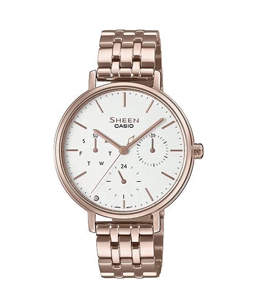 دسته: CASIO, SHEEN, آنالوگ, بدنه استیل, بدنه رزگلد, بند استیل, جنس بدنه, جنس بند, رنگ بدنه, رنگ بند, رنگ صفحه, زنانه, ژاپن, ساعت بر اساس برند, ساعت بر اساس جنسیت, صفحه سفید, مبدا برند, نوع ساعت