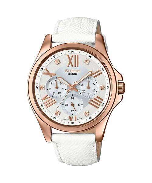 دسته: CASIO, SHEEN, آنالوگ, بدنه استیل, بدنه رزگلد, بند چرم, بند سفید, جنس بدنه, جنس بند, رنگ بدنه, رنگ بند, رنگ صفحه, زنانه, ژاپن, ساعت بر اساس برند, ساعت بر اساس جنسیت, مبدا برند, نوع ساعت