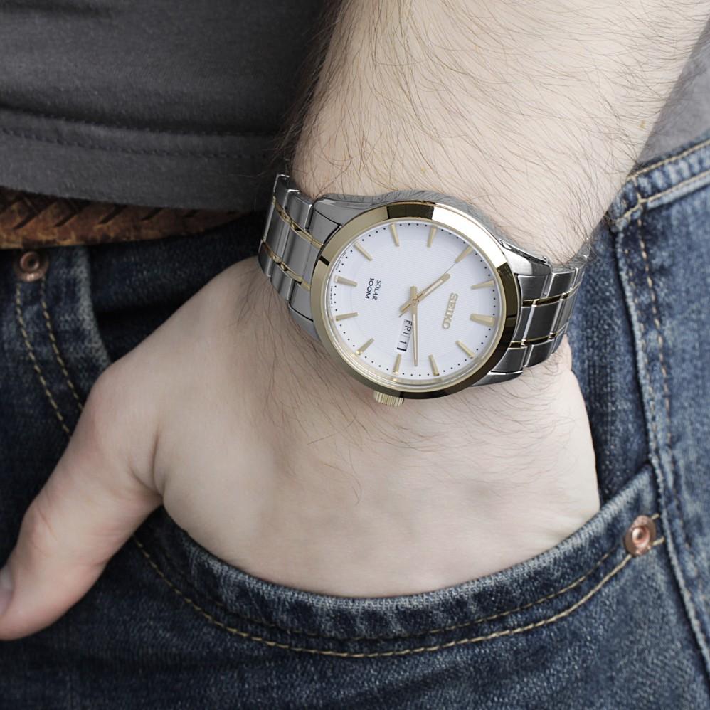 ساعت مچی سیکو مدل SNE364P1سیکو، یک برند معروف و محبوب در زمینه ساعتهای مچی و تجهیزات وابسته به آن می باشد. این شرکت در سال 1881 توسط البرتو سیکو در شهر کوماتو، ژاپن تأسیس شد و از پیشتازان صنعت ساعت سازیست.طراحیهای ساعتهای سیکو اغلب ساده، کلاسیک و البته زیبا هستند. به صورتی است که با طراحیهای مدرن و کلاسیک هماهنگی دارند.ساعتهای سیکو تلفیق هنر، دقت و نوآوریست. سیکو نمادی از زمان و یک علامت شناخته شده از سلیقه و اعتبار است.هر محصول، یک داستان منحصر به فرد از زمان و ذوق طراحی را با خود به ارمغان میآورد. از جنسها و مواد برتر تا طراحیهای شگفتانگیز، هر ساعت سیکو به عنوان یک اثر هنری برجسته شناخته میشود.همچنین، فناوریهای پیشرفته و دقت فوقالعاده در ساعتهای سیکو اطمینان میدهند که شما همواره در کنترل زمان خود باشید.با مجموعهای از ساعتهای متنوع و جذاب، سیکو تجربهای فوقالعاده از زمان و استایل را برای شما فراهم میکند. اکنون، با محصولات سیکو، زمان را به یک سفر استثنایی از زیبایی و علم تبدیل کنید.SeikoGENERAL، مدل های روزمره و ورزش سیکو را تشکیل می دهند. این ساعت ها معمولا از موتور کوارتز بهره می برند و در مدل های تخصصی کرنومتر و نمایش ۲۴ ساعت شبانه روز را برای شما فراهم می کنند.جنس بدنه استیل و تیتانیوم به همراه بند های رابر، چرمی و استیل جنس این مدل ساعت را تشکیل می دهد. سری جنرال قیمت های مقرون به صرفه تری نسبت به دیگر مدل های سیکو دارند.ویژگی های کلیدی ساعت مچی سیکو مدل SNE364P1جنس قاب: استیلجنس بند: استیلجنس شیشه: هاردلکستکنولوژی موتور: سولار