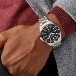 ساعت مچی سیکو مدلSNE597P1سیکو، یک برند معروف و محبوب در زمینه ساعتهای مچی و تجهیزات وابسته به آن می باشد. این شرکت در سال 1881 توسط البرتو سیکو در شهر کوماتو، ژاپن تأسیس شد و از پیشتازان صنعت ساعت سازیست.طراحیهای ساعتهای سیکو اغلب ساده، کلاسیک و البته زیبا هستند. به صورتی است که با طراحیهای مدرن و کلاسیک هماهنگی دارند.ساعتهای سیکو تلفیق هنر، دقت و نوآوریست. سیکو نمادی از زمان و یک علامت شناخته شده از سلیقه و اعتبار است.هر محصول، یک داستان منحصر به فرد از زمان و ذوق طراحی را با خود به ارمغان میآورد. از جنسها و مواد برتر تا طراحیهای شگفتانگیز، هر ساعت سیکو به عنوان یک اثر هنری برجسته شناخته میشود. همچنین، فناوریهای پیشرفته و دقت فوقالعاده در ساعتهای سیکو اطمینان میدهند که شما همواره در کنترل زمان خود باشید.با مجموعهای از ساعتهای متنوع و جذاب، سیکو تجربهای فوقالعاده از زمان و استایل را برای شما فراهم میکند. اکنون، با محصولات سیکو، زمان را به یک سفر استثنایی از زیبایی و علم تبدیل کنید.SeikoProspex، مخفف «مشخصات حرفهای»، خط تولید ساعتهای ورزشی با کارایی بالا است که توسط شرکت ژاپنی ساعتسازی سیکو تولید میشود. سری Prospex به خاطر ساعتهای بادوام و مستحکم خود که برای استفاده حرفهای طراحی شدهاند، بهویژه در محیطهای شدید مانند غواصی، هوانوردی و فعالیتهای خارج از منزل شناخته میشوند.ویژگی های کلیدی ساعت مچی سیکو مدل SNE597P1جنس قاب: استیلجنس بند: استیلجنس شیشه: یاقوت کبودتکنولوژی موتور: سولار