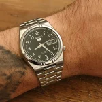 ساعت مچی سیکو مدل SNK063J5سیکو، برندی معروف و محبوب در زمینه ساعتهای مچی و تجهیزات وابسته به آن می باشد. این شرکت در سال 1881 توسط البرتو سیکو در شهر کوماتو، ژاپن تأسیس شد و از پیشتازان صنعت ساعت سازیست.طراحیهای ساعتهای سیکو اغلب ساده، کلاسیک و البته زیبا هستند. به صورتی است که با طراحیهای مدرن و کلاسیک هماهنگی دارند.ساعتهای سیکو تلفیق هنر، دقت و نوآوریست. سیکو را می توانید به عنوان نماد سلیقه و اعتبار بشناسید.هر محصول، یک داستان منحصر به فرد از زمان و ذوق طراحی را با خود به ارمغان میآورد. از جنسها و مواد برتر تا طراحیهای شگفتانگیز، هر ساعت سیکو به عنوان یک اثر هنری برجسته شناخته میشود. همچنین، فناوریهای پیشرفته و دقت فوقالعاده در ساعتهای سیکو اطمینان میدهند که شما همواره در کنترل زمان خود باشید.با مجموعهای از ساعتهای متنوع و جذاب، سیکو تجربهای فوقالعاده از زمان و استایل را برای شما فراهم میکند. اکنون، با محصولات سیکو، زمان را به یک سفر استثنایی از زیبایی و علم تبدیل کنید.سیکو 5 سری ساعت های مکانیکی اتوماتیک هستند که توسط شرکت ژاپنی ساعت سازی سیکو تولید می شود. سری Seiko 5 از سال 1963 به بازار آمد. ارائه ساعتهای مقرون به صرفه، قابل اعتماد و بادوام با تمرکز بر عملکرد و کاربردی، ویژگی های خاص این سری از ساعت هاست.ویژگی های کلیدی ساعت مچی سیکو مدل SNK063J5جنس قاب: استیلجنس بند: استیلجنس شیشه: هاردلکستکنولوژی موتور: اتوماتیک