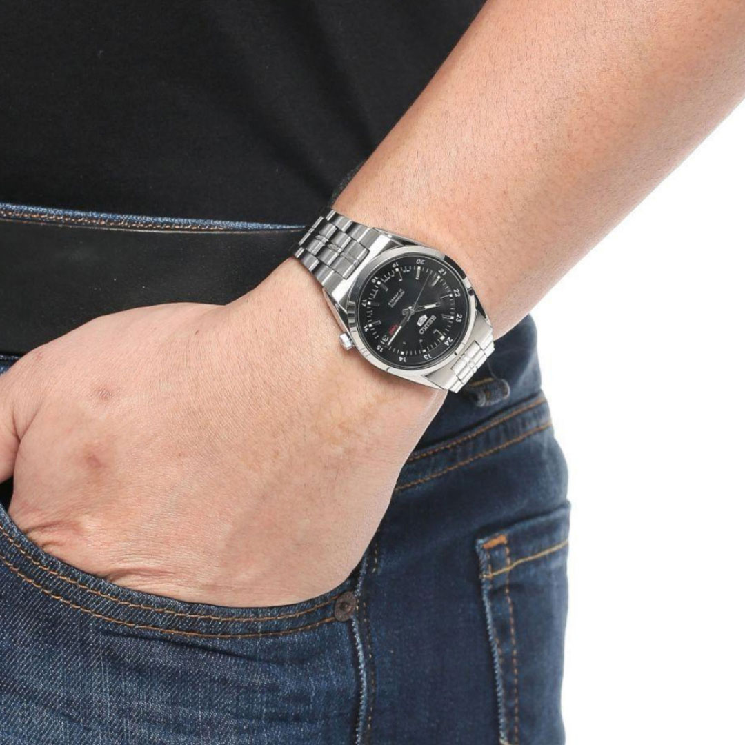 ساعت مچی سیکو مدل SNK567J1سیکو، برندی معروف و محبوب در زمینه ساعتهای مچی و تجهیزات وابسته به آن می باشد. این شرکت در سال 1881 توسط البرتو سیکو در شهر کوماتو، ژاپن تأسیس شد و از پیشتازان صنعت ساعت سازیست.طراحیهای ساعتهای سیکو اغلب ساده، کلاسیک و البته زیبا هستند. به صورتی است که با طراحیهای مدرن و کلاسیک هماهنگی دارند.ساعتهای سیکو تلفیق هنر، دقت و نوآوریست. سیکو را می توانید به عنوان نماد سلیقه و اعتبار بشناسید.هر محصول، یک داستان منحصر به فرد از زمان و ذوق طراحی را با خود به ارمغان میآورد. از جنسها و مواد برتر تا طراحیهای شگفتانگیز، هر ساعت سیکو به عنوان یک اثر هنری برجسته شناخته میشود. همچنین، فناوریهای پیشرفته و دقت فوقالعاده در ساعتهای سیکو اطمینان میدهند که شما همواره در کنترل زمان خود باشید.با مجموعهای از ساعتهای متنوع و جذاب، سیکو تجربهای فوقالعاده از زمان و استایل را برای شما فراهم میکند. اکنون، با محصولات سیکو، زمان را به یک سفر استثنایی از زیبایی و علم تبدیل کنید.سیکو 5 سری ساعت های مکانیکی اتوماتیک هستند که توسط شرکت ژاپنی ساعت سازی سیکو تولید می شود. سری Seiko 5 از سال 1963 به بازار آمد. ارائه ساعتهای مقرون به صرفه، قابل اعتماد و بادوام با تمرکز بر عملکرد و کاربردی، ویژگی های خاص این سری از ساعت هاست.ویژگی های کلیدی ساعت مچی سیکو مدل SNK567J1جنس قاب: استیلجنس بند: استیلجنس شیشه: هاردلکستکنولوژی موتور: اتوماتیک