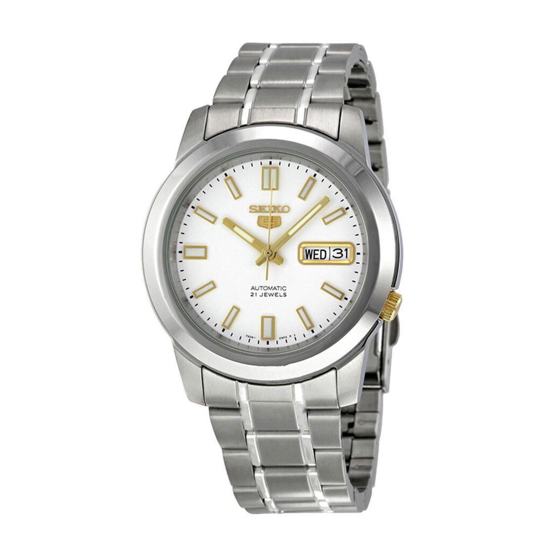 ساعت مچی سیکو مدل SNKK07J1سیکو، برندی معروف و محبوب در زمینه ساعتهای مچی و تجهیزات وابسته به آن می باشد. این شرکت در سال 1881 توسط البرتو سیکو در شهر کوماتو، ژاپن تأسیس شد و از پیشتازان صنعت ساعت سازیست.طراحیهای ساعتهای سیکو اغلب ساده، کلاسیک و البته زیبا هستند. به صورتی است که با طراحیهای مدرن و کلاسیک هماهنگی دارند.ساعتهای سیکو تلفیق هنر، دقت و نوآوریست. سیکو را می توانید به عنوان نماد سلیقه و اعتبار بشناسید.هر محصول، یک داستان منحصر به فرد از زمان و ذوق طراحی را با خود به ارمغان میآورد. از جنسها و مواد برتر تا طراحیهای شگفتانگیز، هر ساعت سیکو به عنوان یک اثر هنری برجسته شناخته میشود. همچنین، فناوریهای پیشرفته و دقت فوقالعاده در ساعتهای سیکو اطمینان میدهند که شما همواره در کنترل زمان خود باشید.با مجموعهای از ساعتهای متنوع و جذاب، سیکو تجربهای فوقالعاده از زمان و استایل را برای شما فراهم میکند. اکنون، با محصولات سیکو، زمان را به یک سفر استثنایی از زیبایی و علم تبدیل کنید.سیکو 5 سری ساعت های مکانیکی اتوماتیک هستند که توسط شرکت ژاپنی ساعت سازی سیکو تولید می شود. سری Seiko 5 از سال 1963 به بازار آمد. ارائه ساعتهای مقرون به صرفه، قابل اعتماد و بادوام با تمرکز بر عملکرد و کاربردی، ویژگی های خاص این سری از ساعت هاست.ویژگی های کلیدی ساعت مچی سیکو مدل SNKK07J1جنس قاب: استیلجنس بند: استیلجنس شیشه: هاردلکستکنولوژی موتور: اتوماتیک