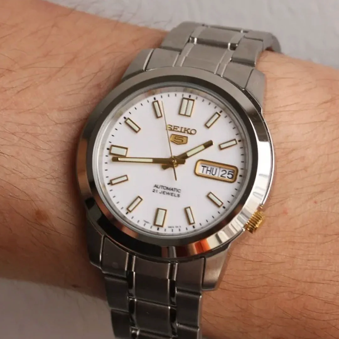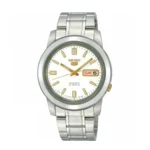 ساعت مچی سیکو مدل SNKK07K1سیکو، برندی معروف و محبوب در زمینه ساعتهای مچی و تجهیزات وابسته به آن می باشد. این شرکت در سال 1881 توسط البرتو سیکو در شهر کوماتو، ژاپن تأسیس شد و از پیشتازان صنعت ساعت سازیست.طراحیهای ساعتهای سیکو اغلب ساده، کلاسیک و البته زیبا هستند. به صورتی است که با طراحیهای مدرن و کلاسیک هماهنگی دارند.ساعتهای سیکو تلفیق هنر، دقت و نوآوریست. سیکو را می توانید به عنوان نماد سلیقه و اعتبار بشناسید.هر محصول، یک داستان منحصر به فرد از زمان و ذوق طراحی را با خود به ارمغان میآورد. از جنسها و مواد برتر تا طراحیهای شگفتانگیز، هر ساعت سیکو به عنوان یک اثر هنری برجسته شناخته میشود. همچنین، فناوریهای پیشرفته و دقت فوقالعاده در ساعتهای سیکو اطمینان میدهند که شما همواره در کنترل زمان خود باشید.با مجموعهای از ساعتهای متنوع و جذاب، سیکو تجربهای فوقالعاده از زمان و استایل را برای شما فراهم میکند. اکنون، با محصولات سیکو، زمان را به یک سفر استثنایی از زیبایی و علم تبدیل کنید.سیکو 5 سری ساعت های مکانیکی اتوماتیک هستند که توسط شرکت ژاپنی ساعت سازی سیکو تولید می شود. سری Seiko 5 از سال 1963 به بازار آمد. ارائه ساعتهای مقرون به صرفه، قابل اعتماد و بادوام با تمرکز بر عملکرد و کاربردی، ویژگی های خاص این سری از ساعت هاست.ویژگی های کلیدی ساعت مچی سیکو مدل SNKK07K1جنس قاب: استیلجنس بند: استیلجنس شیشه: هاردلکستکنولوژی موتور: اتوماتیک
