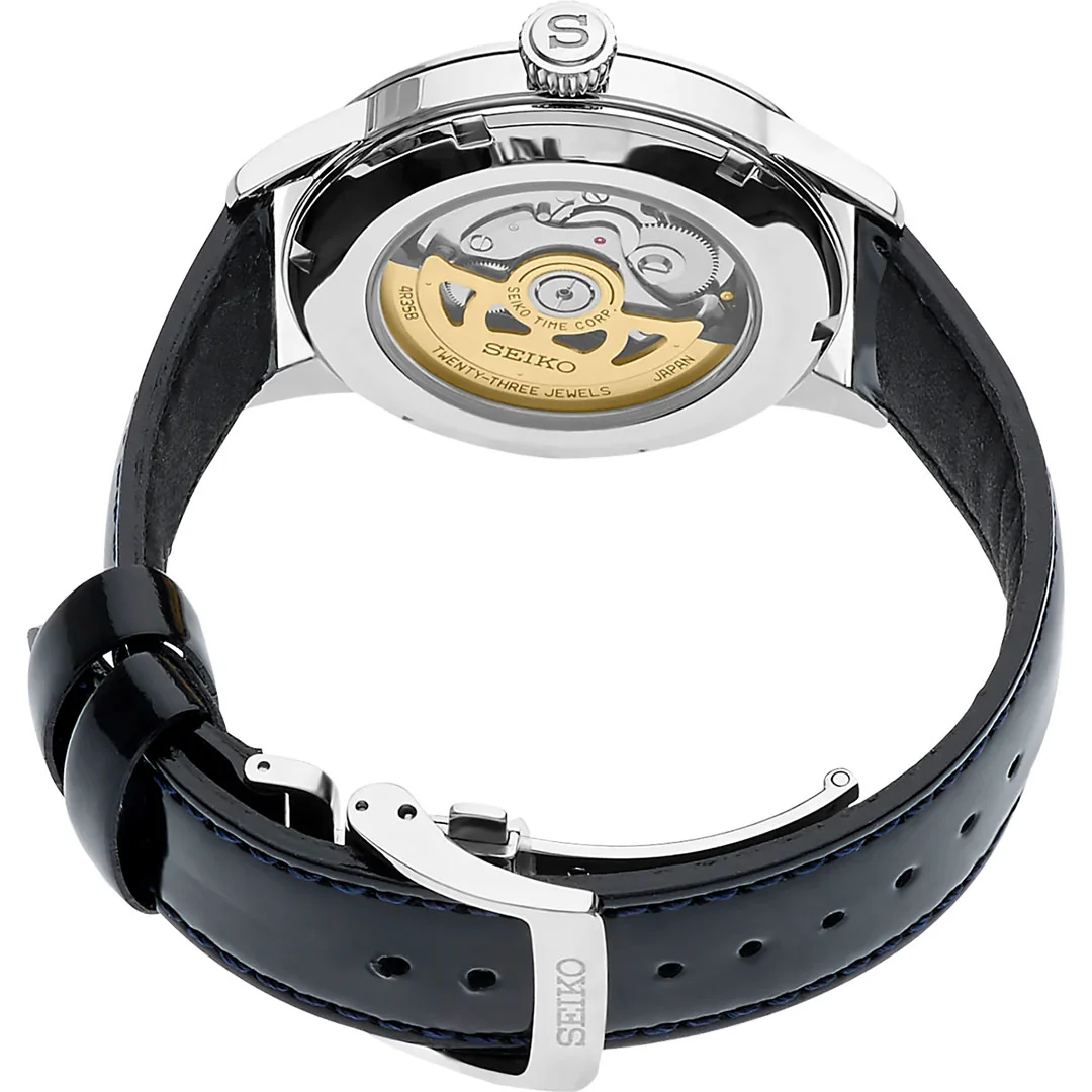 ساعت مچی سیکو مدلSRPB43سیکو، یک برند معروف و محبوب در زمینه ساعتهای مچی و تجهیزات وابسته به آن می باشد. این شرکت در سال 1881 توسط البرتو سیکو در شهر کوماتو، ژاپن تأسیس شد و از پیشتازان صنعت ساعت سازیست.طراحیهای ساعتهای سیکو اغلب ساده، کلاسیک و البته زیبا هستند. به صورتی است که با طراحیهای مدرن و کلاسیک هماهنگی دارند.ساعتهای سیکو تلفیق هنر، دقت و نوآوریست. سیکو نمادی از زمان و یک علامت شناخته شده از سلیقه و اعتبار است.هر محصول، یک داستان منحصر به فرد از زمان و ذوق طراحی را با خود به ارمغان میآورد. از جنسها و مواد برتر تا طراحیهای شگفتانگیز، هر ساعت سیکو به عنوان یک اثر هنری برجسته شناخته میشود. همچنین، فناوریهای پیشرفته و دقت فوقالعاده در ساعتهای سیکو اطمینان میدهند که شما همواره در کنترل زمان خود باشید.با مجموعهای از ساعتهای متنوع و جذاب، سیکو تجربهای فوقالعاده از زمان و استایل را برای شما فراهم میکند. اکنون، با محصولات سیکو، زمان را به یک سفر استثنایی از زیبایی و علم تبدیل کنید.Seiko Presage، سری ساعت های مچی است که به مناسبت ۱۱۰ همین سالگرد افتتاح، توسط شرکت ساعت سازی ژاپنی Seiko معرفی گردید و تولید می شود. سری Presage ترکیبی از هنر سنتی ژاپن که با طراحی معاصر و فناوری پیشرفته می باشد. مدل های این ساعت ماسب برای مراسم رسمی و استفاده لوکس هستند.ویژگی های کلیدی ساعت مچی سیکو مدل SRPB43جنس قاب: استیلجنس بند: چرمیجنس شیشه: هاردلکستکنولوژی موتور: اتوماتیک