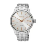 ساعت مچی سیکو مدل SRPB47J1سیکو، یک برند معروف و محبوب در زمینه ساعتهای مچی و تجهیزات وابسته به آن می باشد. این شرکت در سال 1881 توسط البرتو سیکو در شهر کوماتو، ژاپن تأسیس شد و از پیشتازان صنعت ساعت سازیست.طراحیهای ساعتهای سیکو اغلب ساده، کلاسیک و البته زیبا هستند. به صورتی است که با طراحیهای مدرن و کلاسیک هماهنگی دارند.ساعتهای سیکو تلفیق هنر، دقت و نوآوریست. سیکو نمادی از زمان و یک علامت شناخته شده از سلیقه و اعتبار است.هر محصول، یک داستان منحصر به فرد از زمان و ذوق طراحی را با خود به ارمغان میآورد. از جنسها و مواد برتر تا طراحیهای شگفتانگیز، هر ساعت سیکو به عنوان یک اثر هنری برجسته شناخته میشود. همچنین، فناوریهای پیشرفته و دقت فوقالعاده در ساعتهای سیکو اطمینان میدهند که شما همواره در کنترل زمان خود باشید.با مجموعهای از ساعتهای متنوع و جذاب، سیکو تجربهای فوقالعاده از زمان و استایل را برای شما فراهم میکند. اکنون، با محصولات سیکو، زمان را به یک سفر استثنایی از زیبایی و علم تبدیل کنید.Seiko Presage، سری ساعت های مچی است که به مناسبت ۱۱۰ همین سالگرد افتتاح، توسط شرکت ساعت سازی ژاپنی Seiko معرفی گردید و تولید می شود. سری Presage ترکیبی از هنر سنتی ژاپن که با طراحی معاصر و فناوری پیشرفته می باشد. مدل های این ساعت ماسب برای مراسم رسمی و استفاده لوکس هستند.ویژگی های کلیدی ساعت مچی سیکو مدل SRPB47J1جنس قاب: استیلجنس بند: استیلجنس شیشه: هاردلکستکنولوژی موتور: اتوماتیک