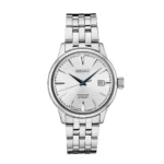 ساعت مچی سیکو مدل SRPB77سیکو، یک برند معروف و محبوب در زمینه ساعتهای مچی و تجهیزات وابسته به آن می باشد. این شرکت در سال 1881 توسط البرتو سیکو در شهر کوماتو، ژاپن تأسیس شد و از پیشتازان صنعت ساعت سازیست.طراحیهای ساعتهای سیکو اغلب ساده، کلاسیک و البته زیبا هستند. به صورتی است که با طراحیهای مدرن و کلاسیک هماهنگی دارند.ساعتهای سیکو تلفیق هنر، دقت و نوآوریست. سیکو نمادی از زمان و یک علامت شناخته شده از سلیقه و اعتبار است.هر محصول، یک داستان منحصر به فرد از زمان و ذوق طراحی را با خود به ارمغان میآورد. از جنسها و مواد برتر تا طراحیهای شگفتانگیز، هر ساعت سیکو به عنوان یک اثر هنری برجسته شناخته میشود. همچنین، فناوریهای پیشرفته و دقت فوقالعاده در ساعتهای سیکو اطمینان میدهند که شما همواره در کنترل زمان خود باشید.با مجموعهای از ساعتهای متنوع و جذاب، سیکو تجربهای فوقالعاده از زمان و استایل را برای شما فراهم میکند. اکنون، با محصولات سیکو، زمان را به یک سفر استثنایی از زیبایی و علم تبدیل کنید.Seiko Presage، سری ساعت های مچی است که به مناسبت ۱۱۰ همین سالگرد افتتاح، توسط شرکت ساعت سازی ژاپنی Seiko معرفی گردید و تولید می شود. سری Presage ترکیبی از هنر سنتی ژاپن که با طراحی معاصر و فناوری پیشرفته می باشد. مدل های این ساعت ماسب برای مراسم رسمی و استفاده لوکس هستند.ویژگی های کلیدی ساعت مچی سیکو مدل SRPB77جنس قاب: استیلجنس بند: استیلجنس شیشه: هاردلکستکنولوژی موتور: اتوماتیک