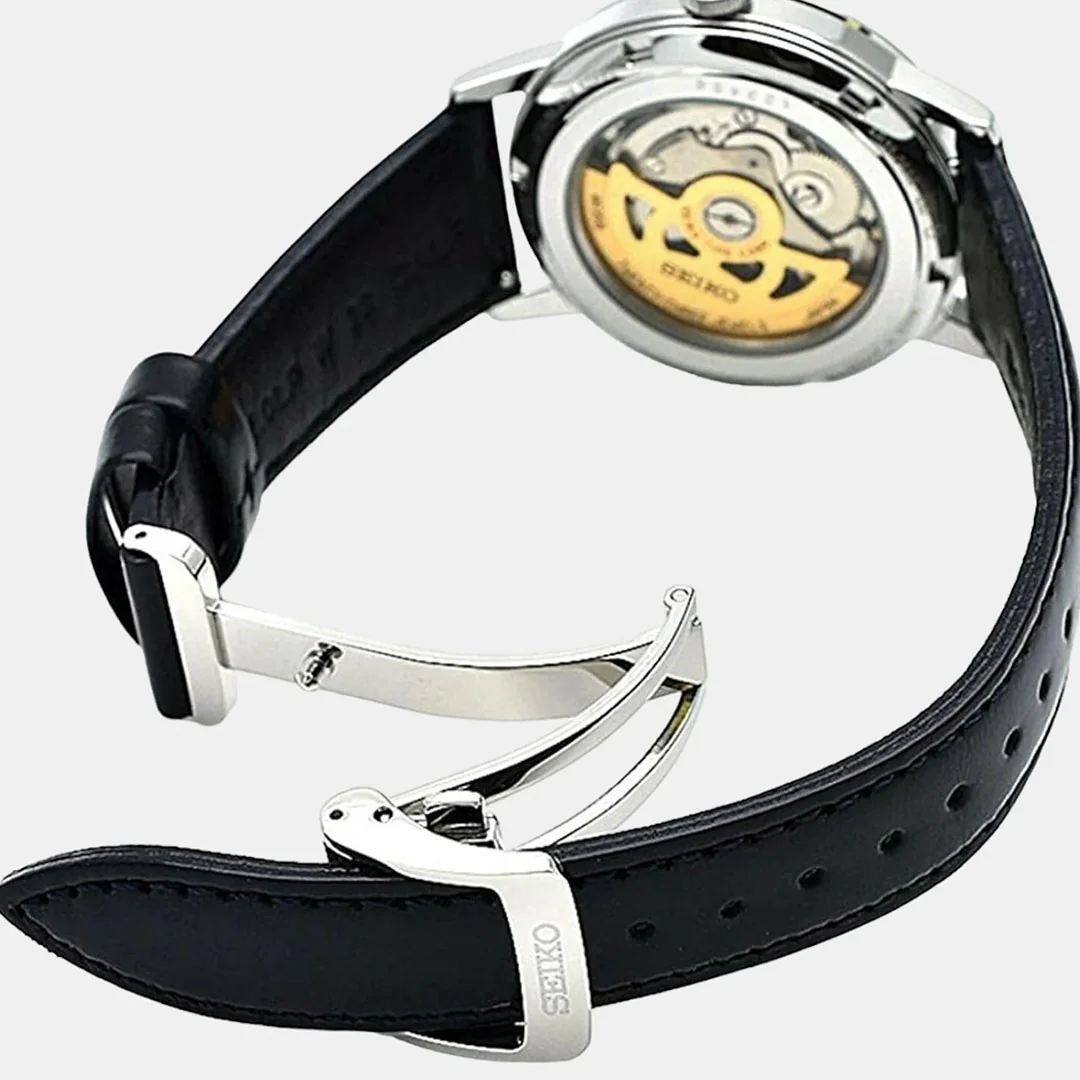 ساعت مچی سیکو مدلSRPE43J1سیکو، یک برند معروف و محبوب در زمینه ساعتهای مچی و تجهیزات وابسته به آن می باشد. این شرکت در سال 1881 توسط البرتو سیکو در شهر کوماتو، ژاپن تأسیس شد و از پیشتازان صنعت ساعت سازیست.طراحیهای ساعتهای سیکو اغلب ساده، کلاسیک و البته زیبا هستند. به صورتی است که با طراحیهای مدرن و کلاسیک هماهنگی دارند.ساعتهای سیکو تلفیق هنر، دقت و نوآوریست. سیکو نمادی از زمان و یک علامت شناخته شده از سلیقه و اعتبار است.هر محصول، یک داستان منحصر به فرد از زمان و ذوق طراحی را با خود به ارمغان میآورد. از جنسها و مواد برتر تا طراحیهای شگفتانگیز، هر ساعت سیکو به عنوان یک اثر هنری برجسته شناخته میشود. همچنین، فناوریهای پیشرفته و دقت فوقالعاده در ساعتهای سیکو اطمینان میدهند که شما همواره در کنترل زمان خود باشید.با مجموعهای از ساعتهای متنوع و جذاب، سیکو تجربهای فوقالعاده از زمان و استایل را برای شما فراهم میکند. اکنون، با محصولات سیکو، زمان را به یک سفر استثنایی از زیبایی و علم تبدیل کنید.Seiko Presage، سری ساعت های مچی است که به مناسبت ۱۱۰ همین سالگرد افتتاح، توسط شرکت ساعت سازی ژاپنی Seiko معرفی گردید و تولید می شود. سری Presage ترکیبی از هنر سنتی ژاپن که با طراحی معاصر و فناوری پیشرفته می باشد. مدل های این ساعت ماسب برای مراسم رسمی و استفاده لوکس هستند.ویژگی های کلیدی ساعت مچی سیکو مدل SRPE43J1جنس قاب: استیلجنس بند: چرمجنس شیشه: هاردلکستکنولوژی موتور: اتوماتیک