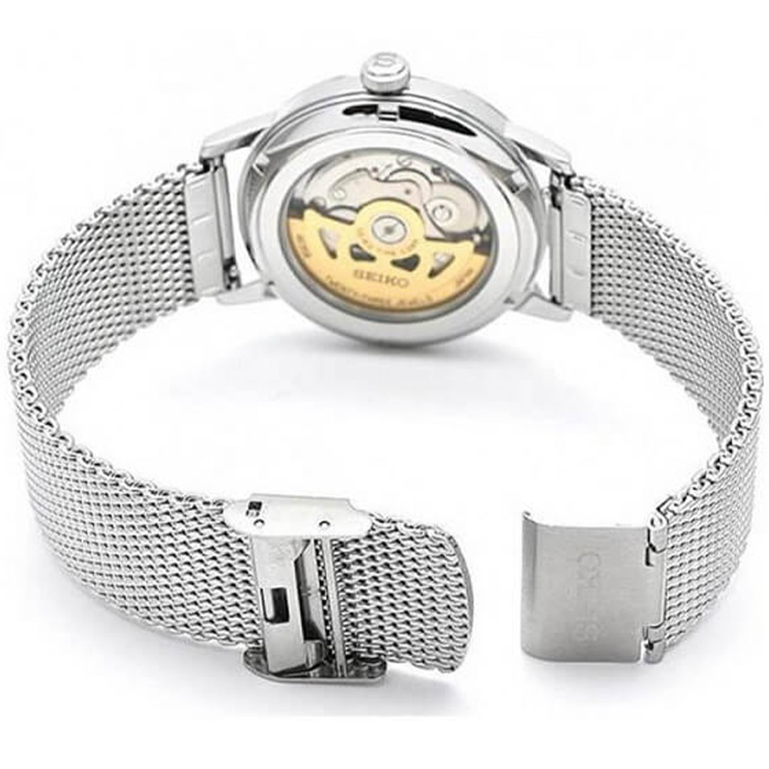 ساعت مچی سیکو مدل SRPF39J1سیکو، یک برند معروف و محبوب در زمینه ساعتهای مچی و تجهیزات وابسته به آن می باشد. این شرکت در سال 1881 توسط البرتو سیکو در شهر کوماتو، ژاپن تأسیس شد و از پیشتازان صنعت ساعت سازیست.طراحیهای ساعتهای سیکو اغلب ساده، کلاسیک و البته زیبا هستند. به صورتی است که با طراحیهای مدرن و کلاسیک هماهنگی دارند.ساعتهای سیکو تلفیق هنر، دقت و نوآوریست. سیکو نمادی از زمان و یک علامت شناخته شده از سلیقه و اعتبار است.هر محصول، یک داستان منحصر به فرد از زمان و ذوق طراحی را با خود به ارمغان میآورد. از جنسها و مواد برتر تا طراحیهای شگفتانگیز، هر ساعت سیکو به عنوان یک اثر هنری برجسته شناخته میشود. همچنین، فناوریهای پیشرفته و دقت فوقالعاده در ساعتهای سیکو اطمینان میدهند که شما همواره در کنترل زمان خود باشید.با مجموعهای از ساعتهای متنوع و جذاب، سیکو تجربهای فوقالعاده از زمان و استایل را برای شما فراهم میکند. اکنون، با محصولات سیکو، زمان را به یک سفر استثنایی از زیبایی و علم تبدیل کنید.Seiko Presage، سری ساعت های مچی است که به مناسبت ۱۱۰ همین سالگرد افتتاح، توسط شرکت ساعت سازی ژاپنی Seiko معرفی گردید و تولید می شود. سری Presage ترکیبی از هنر سنتی ژاپن که با طراحی معاصر و فناوری پیشرفته می باشد. مدل های این ساعت ماسب برای مراسم رسمی و استفاده لوکس هستند.ویژگی های کلیدی ساعت مچی سیکو مدل SRPF39J1جنس قاب: استیلجنس بند: استیلجنس شیشه: هاردلکستکنولوژی موتور: اتوماتیک