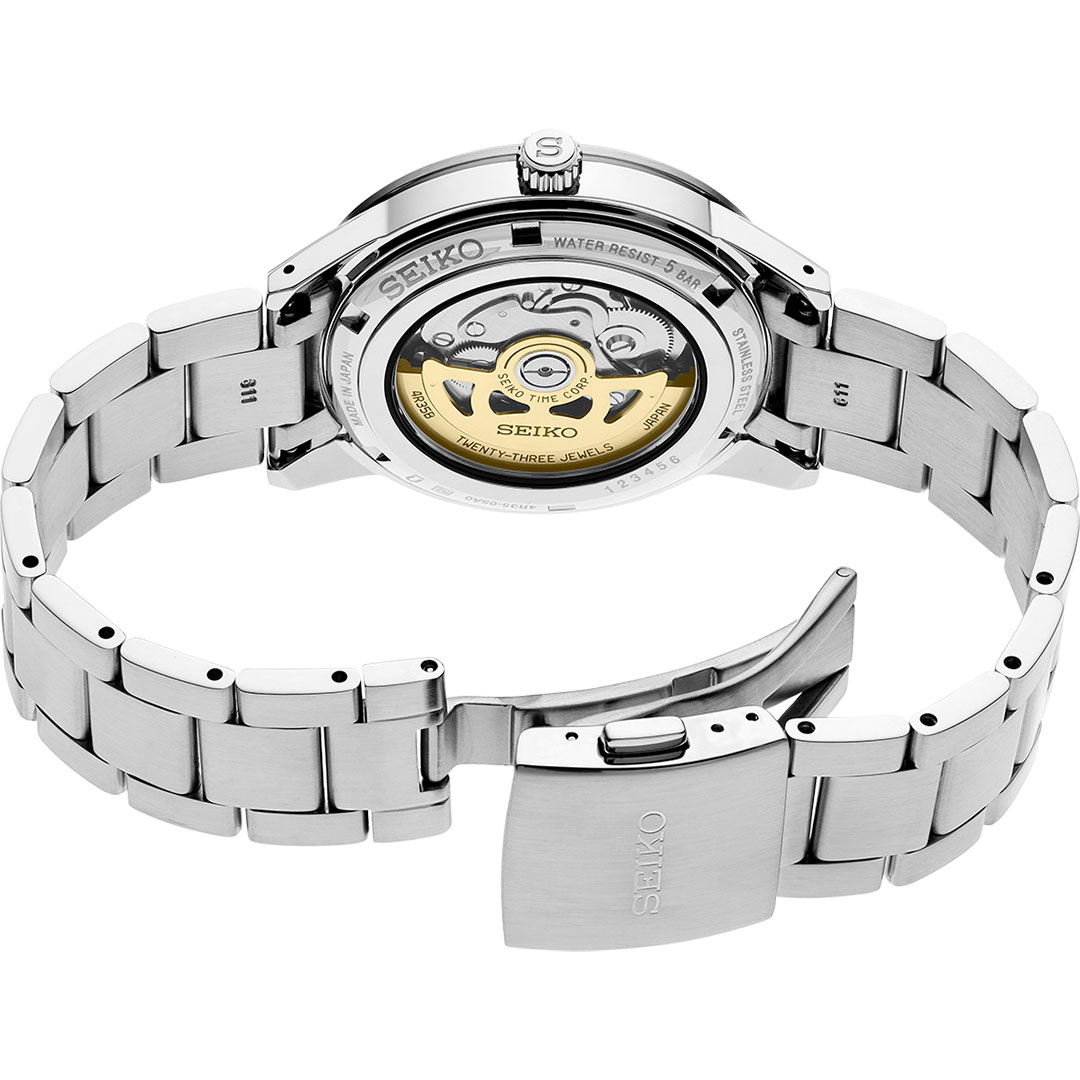 ساعت مچی سیکو مدلSRPG07J1سیکو، یک برند معروف و محبوب در زمینه ساعتهای مچی و تجهیزات وابسته به آن می باشد. این شرکت در سال 1881 توسط البرتو سیکو در شهر کوماتو، ژاپن تأسیس شد و از پیشتازان صنعت ساعت سازیست.طراحیهای ساعتهای سیکو اغلب ساده، کلاسیک و البته زیبا هستند. به صورتی است که با طراحیهای مدرن و کلاسیک هماهنگی دارند.ساعتهای سیکو تلفیق هنر، دقت و نوآوریست. سیکو نمادی از زمان و یک علامت شناخته شده از سلیقه و اعتبار است.هر محصول، یک داستان منحصر به فرد از زمان و ذوق طراحی را با خود به ارمغان میآورد. از جنسها و مواد برتر تا طراحیهای شگفتانگیز، هر ساعت سیکو به عنوان یک اثر هنری برجسته شناخته میشود. همچنین، فناوریهای پیشرفته و دقت فوقالعاده در ساعتهای سیکو اطمینان میدهند که شما همواره در کنترل زمان خود باشید.با مجموعهای از ساعتهای متنوع و جذاب، سیکو تجربهای فوقالعاده از زمان و استایل را برای شما فراهم میکند. اکنون، با محصولات سیکو، زمان را به یک سفر استثنایی از زیبایی و علم تبدیل کنید.Seiko Presage، سری ساعت های مچی است که به مناسبت ۱۱۰ همین سالگرد افتتاح، توسط شرکت ساعت سازی ژاپنی Seiko معرفی گردید و تولید می شود. سری Presage ترکیبی از هنر سنتی ژاپن که با طراحی معاصر و فناوری پیشرفته می باشد. مدل های این ساعت ماسب برای مراسم رسمی و استفاده لوکس هستند.ویژگی های کلیدی ساعت مچی سیکو مدل SRPG07J1جنس قاب: استیلجنس بند: استیلجنس شیشه: هاردلکستکنولوژی موتور: اتوماتیک