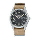 ساعت مچی سیکو مدل SRPG35K1سیکو، برندی معروف و محبوب در زمینه ساعتهای مچی و تجهیزات وابسته به آن می باشد. این شرکت در سال 1881 توسط البرتو سیکو در شهر کوماتو، ژاپن تأسیس شد و از پیشتازان صنعت ساعت سازیست.طراحیهای ساعتهای سیکو اغلب ساده، کلاسیک و البته زیبا هستند. به صورتی است که با طراحیهای مدرن و کلاسیک هماهنگی دارند.ساعتهای سیکو تلفیق هنر، دقت و نوآوریست. سیکو را می توانید به عنوان نماد سلیقه و اعتبار بشناسید.هر محصول، یک داستان منحصر به فرد از زمان و ذوق طراحی را با خود به ارمغان میآورد. از جنسها و مواد برتر تا طراحیهای شگفتانگیز، هر ساعت سیکو به عنوان یک اثر هنری برجسته شناخته میشود. همچنین، فناوریهای پیشرفته و دقت فوقالعاده در ساعتهای سیکو اطمینان میدهند که شما همواره در کنترل زمان خود باشید.با مجموعهای از ساعتهای متنوع و جذاب، سیکو تجربهای فوقالعاده از زمان و استایل را برای شما فراهم میکند. اکنون، با محصولات سیکو، زمان را به یک سفر استثنایی از زیبایی و علم تبدیل کنید.سیکو 5 سری ساعت های مکانیکی اتوماتیک هستند که توسط شرکت ژاپنی ساعت سازی سیکو تولید می شود. سری Seiko 5 از سال 1963 به بازار آمد. ارائه ساعتهای مقرون به صرفه، قابل اعتماد و بادوام با تمرکز بر عملکرد و کاربردی، ویژگی های خاص این سری از ساعت هاست.ویژگی های کلیدی ساعت مچی سیکو مدل SRPG35K1جنس قاب: استیلجنس بند: برزنتجنس شیشه: هاردلکستکنولوژی موتور: اتوماتیک