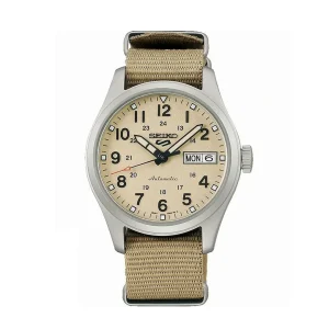 ساعت مچی سیکو مدل SRPJ85K1سیکو، برندی معروف و محبوب در زمینه ساعتهای مچی و تجهیزات وابسته به آن می باشد. این شرکت در سال 1881 توسط البرتو سیکو در شهر کوماتو، ژاپن تأسیس شد و از پیشتازان صنعت ساعت سازیست.طراحیهای ساعتهای سیکو اغلب ساده، کلاسیک و البته زیبا هستند. به صورتی است که با طراحیهای مدرن و کلاسیک هماهنگی دارند.ساعتهای سیکو تلفیق هنر، دقت و نوآوریست. سیکو را می توانید به عنوان نماد سلیقه و اعتبار بشناسید.هر محصول، یک داستان منحصر به فرد از زمان و ذوق طراحی را با خود به ارمغان میآورد. از جنسها و مواد برتر تا طراحیهای شگفتانگیز، هر ساعت سیکو به عنوان یک اثر هنری برجسته شناخته میشود. همچنین، فناوریهای پیشرفته و دقت فوقالعاده در ساعتهای سیکو اطمینان میدهند که شما همواره در کنترل زمان خود باشید.با مجموعهای از ساعتهای متنوع و جذاب، سیکو تجربهای فوقالعاده از زمان و استایل را برای شما فراهم میکند. اکنون، با محصولات سیکو، زمان را به یک سفر استثنایی از زیبایی و علم تبدیل کنید.سیکو 5 سری ساعت های مکانیکی اتوماتیک هستند که توسط شرکت ژاپنی ساعت سازی سیکو تولید می شود. سری Seiko 5 از سال 1963 به بازار آمد. ارائه ساعتهای مقرون به صرفه، قابل اعتماد و بادوام با تمرکز بر عملکرد و کاربردی، ویژگی های خاص این سری از ساعت هاست.ویژگی های کلیدی ساعت مچی سیکو مدل SRPJ85K1جنس قاب: استیلجنس بند: برزنتجنس شیشه: هاردلکستکنولوژی موتور: اتوماتیک