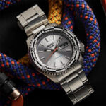 ساعت مچی سیکو مدل SRPK09K1سیکو، برندی معروف و محبوب در زمینه ساعتهای مچی و تجهیزات وابسته به آن می باشد. این شرکت در سال 1881 توسط البرتو سیکو در شهر کوماتو، ژاپن تأسیس شد و از پیشتازان صنعت ساعت سازیست.طراحیهای ساعتهای سیکو اغلب ساده، کلاسیک و البته زیبا هستند. به صورتی است که با طراحیهای مدرن و کلاسیک هماهنگی دارند.ساعتهای سیکو تلفیق هنر، دقت و نوآوریست. سیکو را می توانید به عنوان نماد سلیقه و اعتبار بشناسید.هر محصول، یک داستان منحصر به فرد از زمان و ذوق طراحی را با خود به ارمغان میآورد. از جنسها و مواد برتر تا طراحیهای شگفتانگیز، هر ساعت سیکو به عنوان یک اثر هنری برجسته شناخته میشود. همچنین، فناوریهای پیشرفته و دقت فوقالعاده در ساعتهای سیکو اطمینان میدهند که شما همواره در کنترل زمان خود باشید.با مجموعهای از ساعتهای متنوع و جذاب، سیکو تجربهای فوقالعاده از زمان و استایل را برای شما فراهم میکند. اکنون، با محصولات سیکو، زمان را به یک سفر استثنایی از زیبایی و علم تبدیل کنید.سیکو 5 سری ساعت های مکانیکی اتوماتیک هستند که توسط شرکت ژاپنی ساعت سازی سیکو تولید می شود. سری Seiko 5 از سال 1963 به بازار آمد. ارائه ساعتهای مقرون به صرفه، قابل اعتماد و بادوام با تمرکز بر عملکرد و کاربردی، ویژگی های خاص این سری از ساعت هاست.ویژگی های کلیدی ساعت مچی سیکو مدل SRPK09K1جنس قاب: استیلجنس بند: استیلجنس شیشه: هاردلکستکنولوژی موتور: اتوماتیک