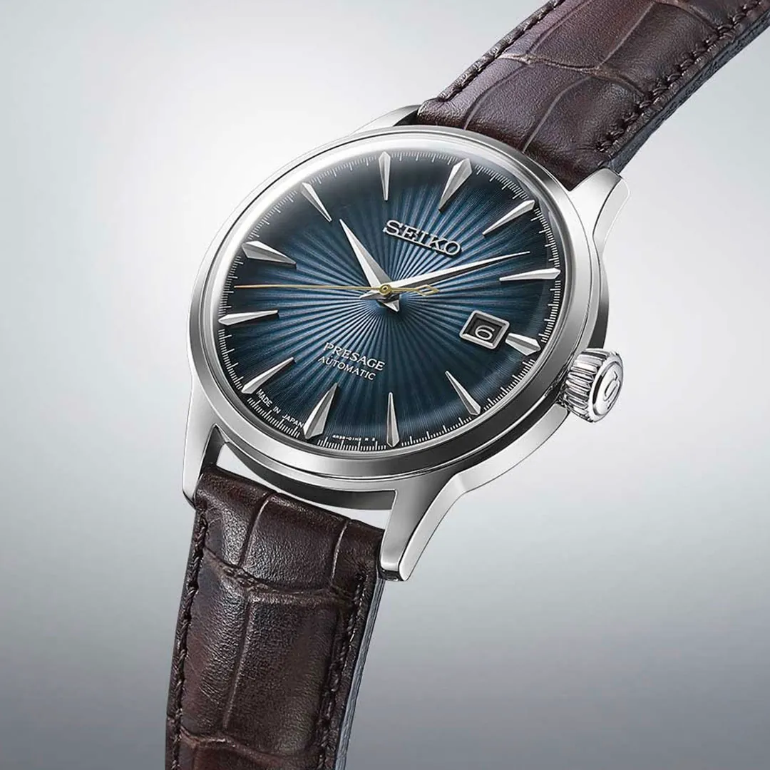 ساعت مچی سیکو مدلSRPK15J1سیکو، یک برند معروف و محبوب در زمینه ساعتهای مچی و تجهیزات وابسته به آن می باشد. این شرکت در سال 1881 توسط البرتو سیکو در شهر کوماتو، ژاپن تأسیس شد و از پیشتازان صنعت ساعت سازیست.طراحیهای ساعتهای سیکو اغلب ساده، کلاسیک و البته زیبا هستند. به صورتی است که با طراحیهای مدرن و کلاسیک هماهنگی دارند.ساعتهای سیکو تلفیق هنر، دقت و نوآوریست. سیکو نمادی از زمان و یک علامت شناخته شده از سلیقه و اعتبار است.هر محصول، یک داستان منحصر به فرد از زمان و ذوق طراحی را با خود به ارمغان میآورد. از جنسها و مواد برتر تا طراحیهای شگفتانگیز، هر ساعت سیکو به عنوان یک اثر هنری برجسته شناخته میشود. همچنین، فناوریهای پیشرفته و دقت فوقالعاده در ساعتهای سیکو اطمینان میدهند که شما همواره در کنترل زمان خود باشید.با مجموعهای از ساعتهای متنوع و جذاب، سیکو تجربهای فوقالعاده از زمان و استایل را برای شما فراهم میکند. اکنون، با محصولات سیکو، زمان را به یک سفر استثنایی از زیبایی و علم تبدیل کنید.Seiko Presage، سری ساعت های مچی است که به مناسبت ۱۱۰ همین سالگرد افتتاح، توسط شرکت ساعت سازی ژاپنی Seiko معرفی گردید و تولید می شود. سری Presage ترکیبی از هنر سنتی ژاپن که با طراحی معاصر و فناوری پیشرفته می باشد. مدل های این ساعت ماسب برای مراسم رسمی و استفاده لوکس هستند.ویژگی های کلیدی ساعت مچی سیکو مدل SRPK15J1جنس قاب: استیلجنس بند: چرمیجنس شیشه: هاردلکستکنولوژی موتور: اتوماتیک