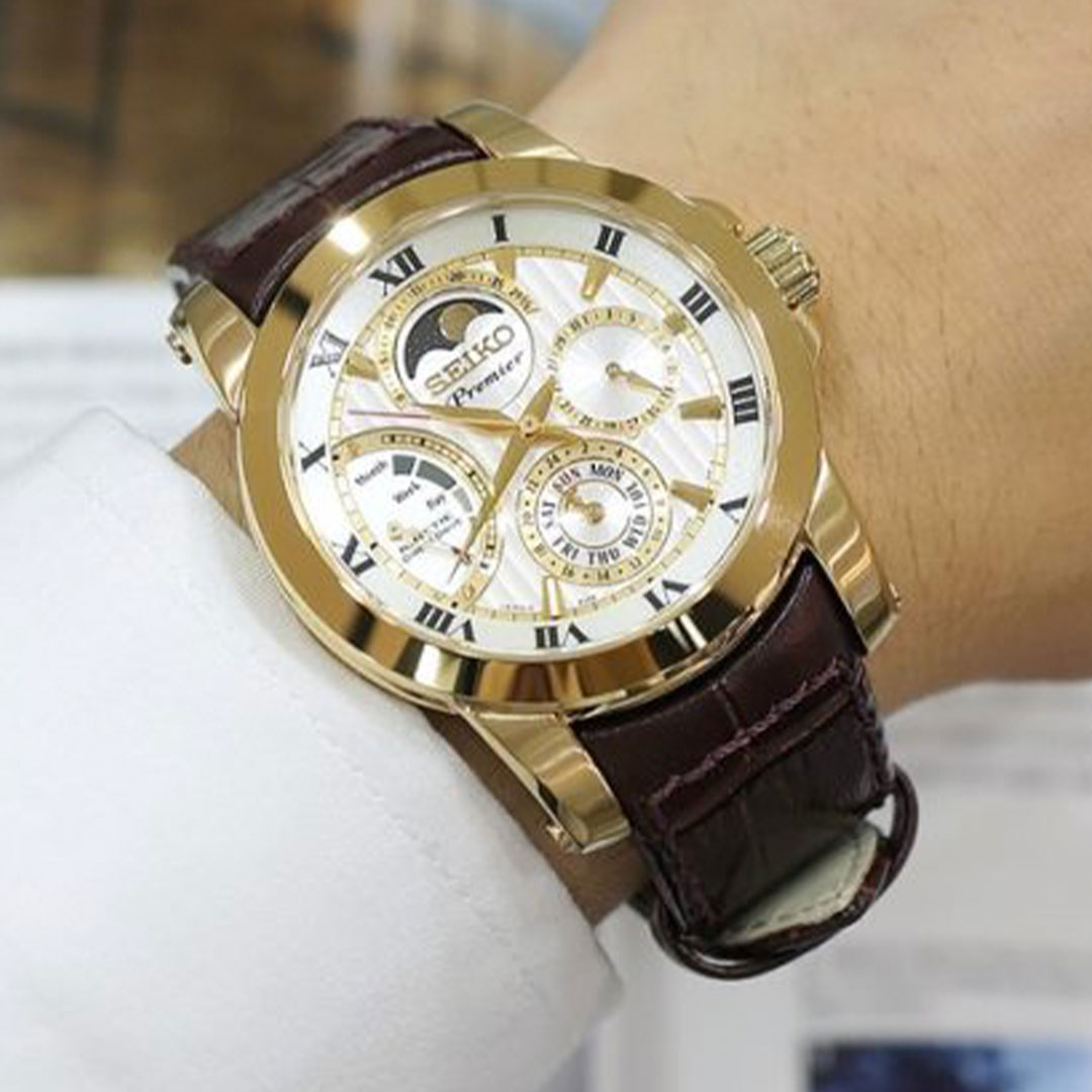 ساعت مچی سیکو مدل SRX014P1سیکو، برندی معروف و محبوب در زمینه ساعتهای مچی و تجهیزات وابسته به آن می باشد. این شرکت در سال 1881 توسط البرتو سیکو در شهر کوماتو، ژاپن تأسیس شد و از پیشتازان صنعت ساعت سازیست.طراحیهای ساعتهای سیکو اغلب ساده، کلاسیک و البته زیبا هستند. به صورتی است که با طراحیهای مدرن و کلاسیک هماهنگی دارند.ساعتهای سیکو تلفیق هنر، دقت و نوآوریست. سیکو را می توانید به عنوان نماد سلیقه و اعتبار بشناسید.هر محصول، یک داستان منحصر به فرد از زمان و ذوق طراحی را با خود به ارمغان میآورد. از جنسها و مواد برتر تا طراحیهای شگفتانگیز، هر ساعت سیکو به عنوان یک اثر هنری برجسته شناخته میشود. همچنین، فناوریهای پیشرفته و دقت فوقالعاده در ساعتهای سیکو اطمینان میدهند که شما همواره در کنترل زمان خود باشید.با مجموعهای از ساعتهای متنوع و جذاب، سیکو تجربهای فوقالعاده از زمان و استایل را برای شما فراهم میکند. اکنون، با محصولات سیکو، زمان را به یک سفر استثنایی از زیبایی و علم تبدیل کنید.سری ساعت Seiko Premier فناوری مدرن در سبک کلاسیکمجموعهای شامل ساعتهای کوارتز، ساعتهایی با فناوری کنتیک سیکو و تقویم همیشگی، ساعتهای سیکو کوارتز خورشیدی و ساعتهای مکانیکی با حرکات خودکار است. که بهعنوان ساعتهای رسمی در نظر گرفته میشود، عمدتاً به طرحهایی با ظرافت متوسط متکی است.ویژگی های کلیدی ساعت مچی سیکو مدل SRX014P1جنس قاب: استیلجنس بند: چرمیجنس شیشه: یاقوت کبودتکنولوژی موتور: کنتیک