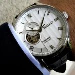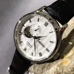 ساعت مچی سیکو مدلSSA379J1سیکو، یک برند معروف و محبوب در زمینه ساعتهای مچی و تجهیزات وابسته به آن می باشد. این شرکت در سال 1881 توسط البرتو سیکو در شهر کوماتو، ژاپن تأسیس شد و از پیشتازان صنعت ساعت سازیست.طراحیهای ساعتهای سیکو اغلب ساده، کلاسیک و البته زیبا هستند. به صورتی است که با طراحیهای مدرن و کلاسیک هماهنگی دارند.ساعتهای سیکو تلفیق هنر، دقت و نوآوریست. سیکو نمادی از زمان و یک علامت شناخته شده از سلیقه و اعتبار است.هر محصول، یک داستان منحصر به فرد از زمان و ذوق طراحی را با خود به ارمغان میآورد. از جنسها و مواد برتر تا طراحیهای شگفتانگیز، هر ساعت سیکو به عنوان یک اثر هنری برجسته شناخته میشود. همچنین، فناوریهای پیشرفته و دقت فوقالعاده در ساعتهای سیکو اطمینان میدهند که شما همواره در کنترل زمان خود باشید.با مجموعهای از ساعتهای متنوع و جذاب، سیکو تجربهای فوقالعاده از زمان و استایل را برای شما فراهم میکند. اکنون، با محصولات سیکو، زمان را به یک سفر استثنایی از زیبایی و علم تبدیل کنید.Seiko Presage، سری ساعت های مچی است که به مناسبت ۱۱۰ همین سالگرد افتتاح، توسط شرکت ساعت سازی ژاپنی Seiko معرفی گردید و تولید می شود. سری Presage ترکیبی از هنر سنتی ژاپن که با طراحی معاصر و فناوری پیشرفته می باشد. مدل های این ساعت ماسب برای مراسم رسمی و استفاده لوکس هستند.ویژگی های کلیدی ساعت مچی سیکو مدل SSA379J1جنس قاب: استیلجنس بند: چرمیجنس شیشه: یاقوت کبودتکنولوژی موتور: اتوماتیک