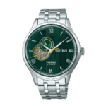 ساعت مچی سیکو مدل SSA463J1سیکو، یک برند معروف و محبوب در زمینه ساعتهای مچی و تجهیزات وابسته به آن می باشد. این شرکت در سال 1881 توسط البرتو سیکو در شهر کوماتو، ژاپن تأسیس شد و از پیشتازان صنعت ساعت سازیست.طراحیهای ساعتهای سیکو اغلب ساده، کلاسیک و البته زیبا هستند. به صورتی است که با طراحیهای مدرن و کلاسیک هماهنگی دارند.ساعتهای سیکو تلفیق هنر، دقت و نوآوریست. سیکو نمادی از زمان و یک علامت شناخته شده از سلیقه و اعتبار است.هر محصول، یک داستان منحصر به فرد از زمان و ذوق طراحی را با خود به ارمغان میآورد. از جنسها و مواد برتر تا طراحیهای شگفتانگیز، هر ساعت سیکو به عنوان یک اثر هنری برجسته شناخته میشود. همچنین، فناوریهای پیشرفته و دقت فوقالعاده در ساعتهای سیکو اطمینان میدهند که شما همواره در کنترل زمان خود باشید.با مجموعهای از ساعتهای متنوع و جذاب، سیکو تجربهای فوقالعاده از زمان و استایل را برای شما فراهم میکند. اکنون، با محصولات سیکو، زمان را به یک سفر استثنایی از زیبایی و علم تبدیل کنید.Seiko Presage، سری ساعت های مچی است که به مناسبت ۱۱۰ همین سالگرد افتتاح، توسط شرکت ساعت سازی ژاپنی Seiko معرفی گردید و تولید می شود. سری Presage ترکیبی از هنر سنتی ژاپن که با طراحی معاصر و فناوری پیشرفته می باشد. مدل های این ساعت ماسب برای مراسم رسمی و استفاده لوکس هستند.ویژگی های کلیدی ساعت مچی سیکو مدل SSA463J1جنس قاب: استیلجنس بند: استیلجنس شیشه: یاقوت کبودتکنولوژی موتور: اتوماتیک
