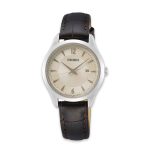 ساعت مچی سیکو مدل SUR427P1سیکو، یک برند معروف و محبوب در زمینه ساعتهای مچی و تجهیزات وابسته به آن می باشد. این شرکت در سال 1881 توسط البرتو سیکو در شهر کوماتو، ژاپن تأسیس شد و از پیشتازان صنعت ساعت سازیست.طراحیهای ساعتهای سیکو اغلب ساده، کلاسیک و البته زیبا هستند. به صورتی است که با طراحیهای مدرن و کلاسیک هماهنگی دارند.ساعتهای سیکو تلفیق هنر، دقت و نوآوریست. سیکو نمادی از زمان و یک علامت شناخته شده از سلیقه و اعتبار است.هر محصول، یک داستان منحصر به فرد از زمان و ذوق طراحی را با خود به ارمغان میآورد. از جنسها و مواد برتر تا طراحیهای شگفتانگیز، هر ساعت سیکو به عنوان یک اثر هنری برجسته شناخته میشود.همچنین، فناوریهای پیشرفته و دقت فوقالعاده در ساعتهای سیکو اطمینان میدهند که شما همواره در کنترل زمان خود باشید.با مجموعهای از ساعتهای متنوع و جذاب، سیکو تجربهای فوقالعاده از زمان و استایل را برای شما فراهم میکند. اکنون، با محصولات سیکو، زمان را به یک سفر استثنایی از زیبایی و علم تبدیل کنید.SeikoGENERAL، مدل های روزمره و ورزش سیکو را تشکیل می دهند. این ساعت ها معمولا از موتور کوارتز بهره می برند و در مدل های تخصصی کرنومتر و نمایش ۲۴ ساعت شبانه روز را برای شما فراهم می کنند.جنس بدنه استیل و تیتانیوم به همراه بند های رابر، چرمی و استیل جنس این مدل ساعت را تشکیل می دهد. سری جنرال قیمت های مقرون به صرفه تری نسبت به دیگر مدل های سیکو دارند.ویژگی های کلیدی ساعت مچی سیکو مدل SUR427P1جنس قاب: استیلجنس بند: چرمیجنس شیشه: یاقوت کبودتکنولوژی موتور: کوارتز