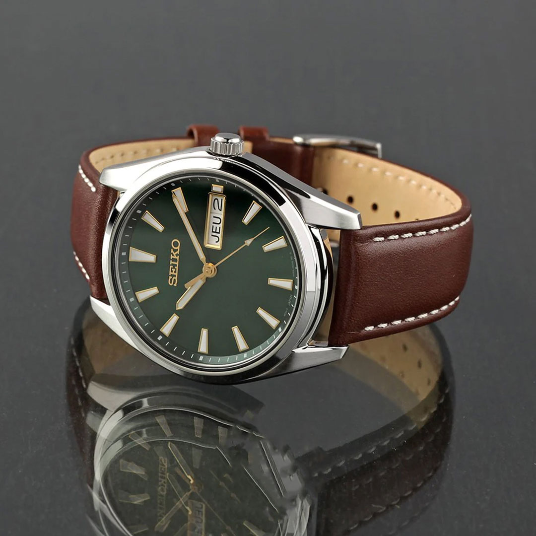 ساعت مچی سیکو مدل SUR449P1سیکو، یک برند معروف و محبوب در زمینه ساعتهای مچی و تجهیزات وابسته به آن می باشد. این شرکت در سال 1881 توسط البرتو سیکو در شهر کوماتو، ژاپن تأسیس شد و از پیشتازان صنعت ساعت سازیست.طراحیهای ساعتهای سیکو اغلب ساده، کلاسیک و البته زیبا هستند. به صورتی است که با طراحیهای مدرن و کلاسیک هماهنگی دارند.ساعتهای سیکو تلفیق هنر، دقت و نوآوریست. سیکو نمادی از زمان و یک علامت شناخته شده از سلیقه و اعتبار است.هر محصول، یک داستان منحصر به فرد از زمان و ذوق طراحی را با خود به ارمغان میآورد. از جنسها و مواد برتر تا طراحیهای شگفتانگیز، هر ساعت سیکو به عنوان یک اثر هنری برجسته شناخته میشود.همچنین، فناوریهای پیشرفته و دقت فوقالعاده در ساعتهای سیکو اطمینان میدهند که شما همواره در کنترل زمان خود باشید.با مجموعهای از ساعتهای متنوع و جذاب، سیکو تجربهای فوقالعاده از زمان و استایل را برای شما فراهم میکند. اکنون، با محصولات سیکو، زمان را به یک سفر استثنایی از زیبایی و علم تبدیل کنید.SeikoGENERAL، مدل های روزمره و ورزش سیکو را تشکیل می دهند. این ساعت ها معمولا از موتور کوارتز بهره می برند و در مدل های تخصصی کرنومتر و نمایش ۲۴ ساعت شبانه روز را برای شما فراهم می کنند.جنس بدنه استیل و تیتانیوم به همراه بند های رابر، چرمی و استیل جنس این مدل ساعت را تشکیل می دهد. سری جنرال قیمت های مقرون به صرفه تری نسبت به دیگر مدل های سیکو دارند.ویژگی های کلیدی ساعت مچی سیکو مدل SUR449P1جنس قاب: استیلجنس بند: چرمیجنس شیشه: یاقوت کبودتکنولوژی موتور: کوارتز