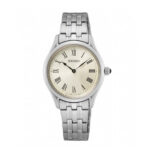 ساعت مچی سیکو مدل SWR069P1سیکو، یک برند معروف و محبوب در زمینه ساعتهای مچی و تجهیزات وابسته به آن می باشد. این شرکت در سال 1881 توسط البرتو سیکو در شهر کوماتو، ژاپن تأسیس شد و از پیشتازان صنعت ساعت سازیست.طراحیهای ساعتهای سیکو اغلب ساده، کلاسیک و البته زیبا هستند. به صورتی است که با طراحیهای مدرن و کلاسیک هماهنگی دارند.ساعتهای سیکو تلفیق هنر، دقت و نوآوریست. سیکو نمادی از زمان و یک علامت شناخته شده از سلیقه و اعتبار است.هر محصول، یک داستان منحصر به فرد از زمان و ذوق طراحی را با خود به ارمغان میآورد. از جنسها و مواد برتر تا طراحیهای شگفتانگیز، هر ساعت سیکو به عنوان یک اثر هنری برجسته شناخته میشود.همچنین، فناوریهای پیشرفته و دقت فوقالعاده در ساعتهای سیکو اطمینان میدهند که شما همواره در کنترل زمان خود باشید.با مجموعهای از ساعتهای متنوع و جذاب، سیکو تجربهای فوقالعاده از زمان و استایل را برای شما فراهم میکند. اکنون، با محصولات سیکو، زمان را به یک سفر استثنایی از زیبایی و علم تبدیل کنید.SeikoGENERAL، مدل های روزمره و ورزش سیکو را تشکیل می دهند. این ساعت ها معمولا از موتور کوارتز بهره می برند و در مدل های تخصصی کرنومتر و نمایش ۲۴ ساعت شبانه روز را برای شما فراهم می کنند.جنس بدنه استیل و تیتانیوم به همراه بند های رابر، چرمی و استیل جنس این مدل ساعت را تشکیل می دهد. سری جنرال قیمت های مقرون به صرفه تری نسبت به دیگر مدل های سیکو دارند.ویژگی های کلیدی ساعت مچی سیکو مدل SWR069P1جنس قاب: استیلجنس بند: استیلجنس شیشه: یاقوت کبودتکنولوژی موتور: کوارتز