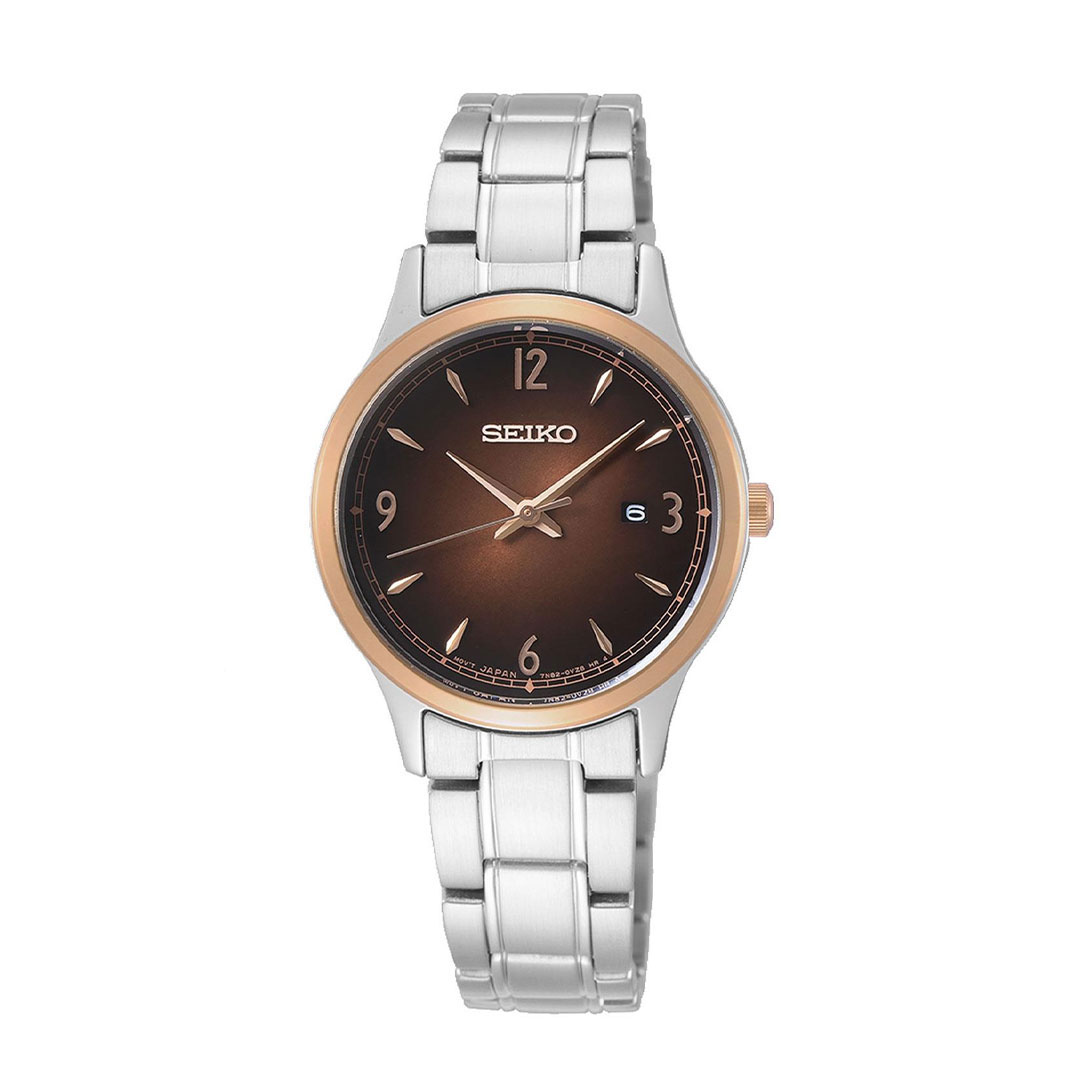 ساعت مچی سیکو مدل SXDH02P1سیکو، یک برند معروف و محبوب در زمینه ساعتهای مچی و تجهیزات وابسته به آن می باشد. این شرکت در سال 1881 توسط البرتو سیکو در شهر کوماتو، ژاپن تأسیس شد و از پیشتازان صنعت ساعت سازیست.طراحیهای ساعتهای سیکو اغلب ساده، کلاسیک و البته زیبا هستند. به صورتی است که با طراحیهای مدرن و کلاسیک هماهنگی دارند.ساعتهای سیکو تلفیق هنر، دقت و نوآوریست. سیکو نمادی از زمان و یک علامت شناخته شده از سلیقه و اعتبار است.هر محصول، یک داستان منحصر به فرد از زمان و ذوق طراحی را با خود به ارمغان میآورد. از جنسها و مواد برتر تا طراحیهای شگفتانگیز، هر ساعت سیکو به عنوان یک اثر هنری برجسته شناخته میشود.همچنین، فناوریهای پیشرفته و دقت فوقالعاده در ساعتهای سیکو اطمینان میدهند که شما همواره در کنترل زمان خود باشید.با مجموعهای از ساعتهای متنوع و جذاب، سیکو تجربهای فوقالعاده از زمان و استایل را برای شما فراهم میکند. اکنون، با محصولات سیکو، زمان را به یک سفر استثنایی از زیبایی و علم تبدیل کنید.SeikoGENERAL، مدل های روزمره و ورزش سیکو را تشکیل می دهند. این ساعت ها معمولا از موتور کوارتز بهره می برند و در مدل های تخصصی کرنومتر و نمایش ۲۴ ساعت شبانه روز را برای شما فراهم می کنند.جنس بدنه استیل و تیتانیوم به همراه بند های رابر، چرمی و استیل جنس این مدل ساعت را تشکیل می دهد. سری جنرال قیمت های مقرون به صرفه تری نسبت به دیگر مدل های سیکو دارند.ویژگی های کلیدی ساعت مچی سیکو مدل SXDH02P1جنس قاب: استیلجنس بند: استیلجنس شیشه: هاردلکستکنولوژی موتور: کوارتز