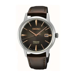 ساعت مچی سیکو مدلSRPJ17J1سیکو، یک برند معروف و محبوب در زمینه ساعتهای مچی و تجهیزات وابسته به آن می باشد. این شرکت در سال 1881 توسط البرتو سیکو در شهر کوماتو، ژاپن تأسیس شد و از پیشتازان صنعت ساعت سازیست.طراحیهای ساعتهای سیکو اغلب ساده، کلاسیک و البته زیبا هستند. به صورتی است که با طراحیهای مدرن و کلاسیک هماهنگی دارند.ساعتهای سیکو تلفیق هنر، دقت و نوآوریست. سیکو نمادی از زمان و یک علامت شناخته شده از سلیقه و اعتبار است.هر محصول، یک داستان منحصر به فرد از زمان و ذوق طراحی را با خود به ارمغان میآورد. از جنسها و مواد برتر تا طراحیهای شگفتانگیز، هر ساعت سیکو به عنوان یک اثر هنری برجسته شناخته میشود. همچنین، فناوریهای پیشرفته و دقت فوقالعاده در ساعتهای سیکو اطمینان میدهند که شما همواره در کنترل زمان خود باشید.با مجموعهای از ساعتهای متنوع و جذاب، سیکو تجربهای فوقالعاده از زمان و استایل را برای شما فراهم میکند. اکنون، با محصولات سیکو، زمان را به یک سفر استثنایی از زیبایی و علم تبدیل کنید.Seiko Presage، سری ساعت های مچی است که به مناسبت ۱۱۰ همین سالگرد افتتاح، توسط شرکت ساعت سازی ژاپنی Seiko معرفی گردید و تولید می شود. سری Presage ترکیبی از هنر سنتی ژاپن که با طراحی معاصر و فناوری پیشرفته می باشد. مدل های این ساعت ماسب برای مراسم رسمی و استفاده لوکس هستند.ویژگی های کلیدی ساعت مچی سیکو مدل SRPJ17J1جنس قاب: استیلجنس بند: چرمیجنس شیشه: هاردلکستکنولوژی موتور: اتوماتیک