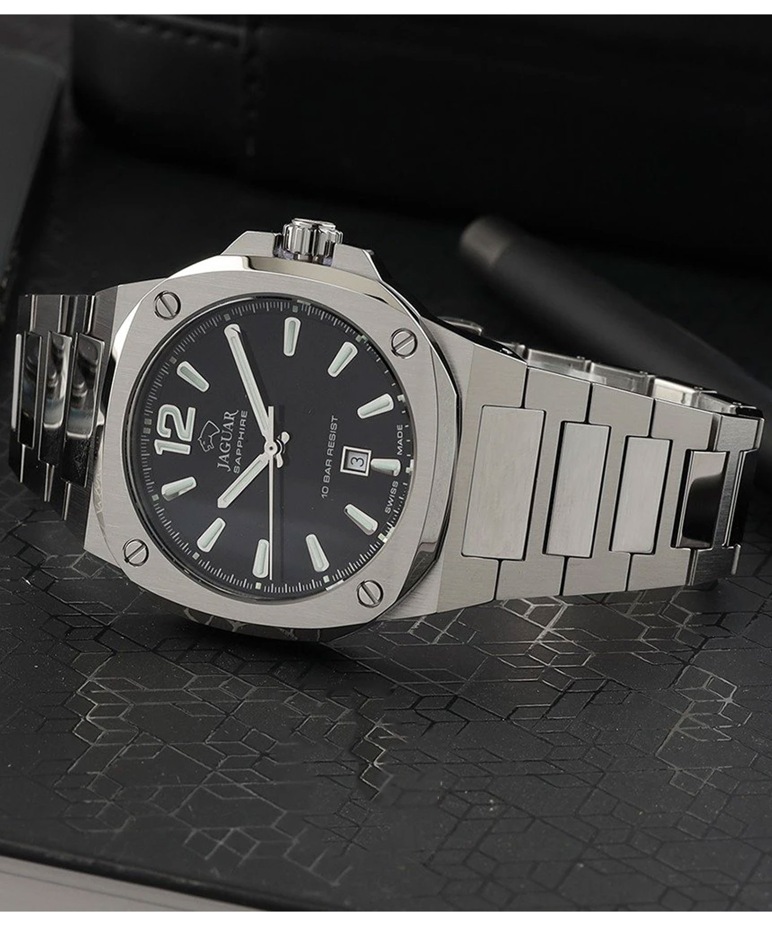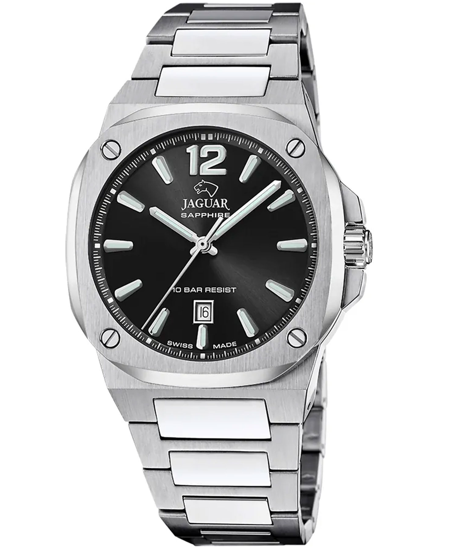 دسته: jaguar, آنالوگ, بند نقره ای, تعداد موتور, جنس بند, جنس قاب, رنگ بند, رنگ صفحه, رنگ قاب, ساعت بر اساس برند, ساعت بر اساس جنسیت, سوییس, صفحه مشکی, قاب نقره ای, مبدا برند, مردانه, نوع ساعت, یک موتور