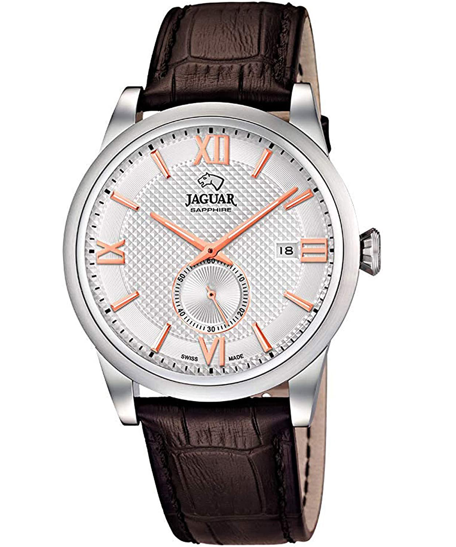دسته: jaguar, آنالوگ, بند قهوه ای, تعداد موتور, جنس بند, جنس قاب, رنگ بند, رنگ صفحه, رنگ قاب, ساعت بر اساس برند, ساعت بر اساس جنسیت, سوییس, صفحه نقره ای, قاب نقره ای, مبدا برند, مردانه, نوع ساعت, یک موتور
