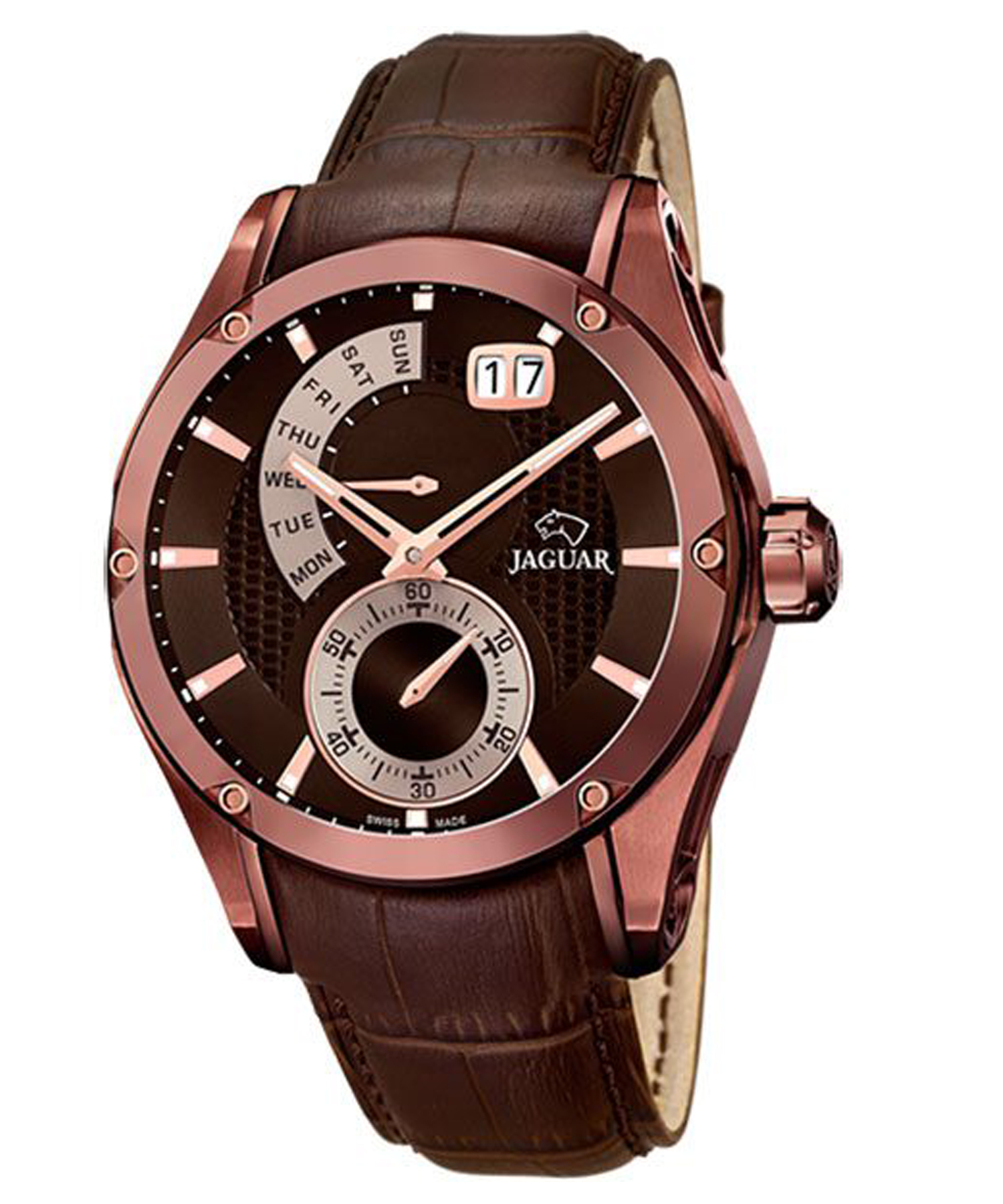 دسته: jaguar, آنالوگ, بند قهوه ای, تعداد موتور, جنس بند, جنس قاب, رنگ بند, رنگ صفحه, رنگ قاب, ساعت بر اساس برند, ساعت بر اساس جنسیت, سوییس, صفحه قهوه ای, قاب رزگلد, مبدا برند, مردانه, نوع ساعت, یک موتور