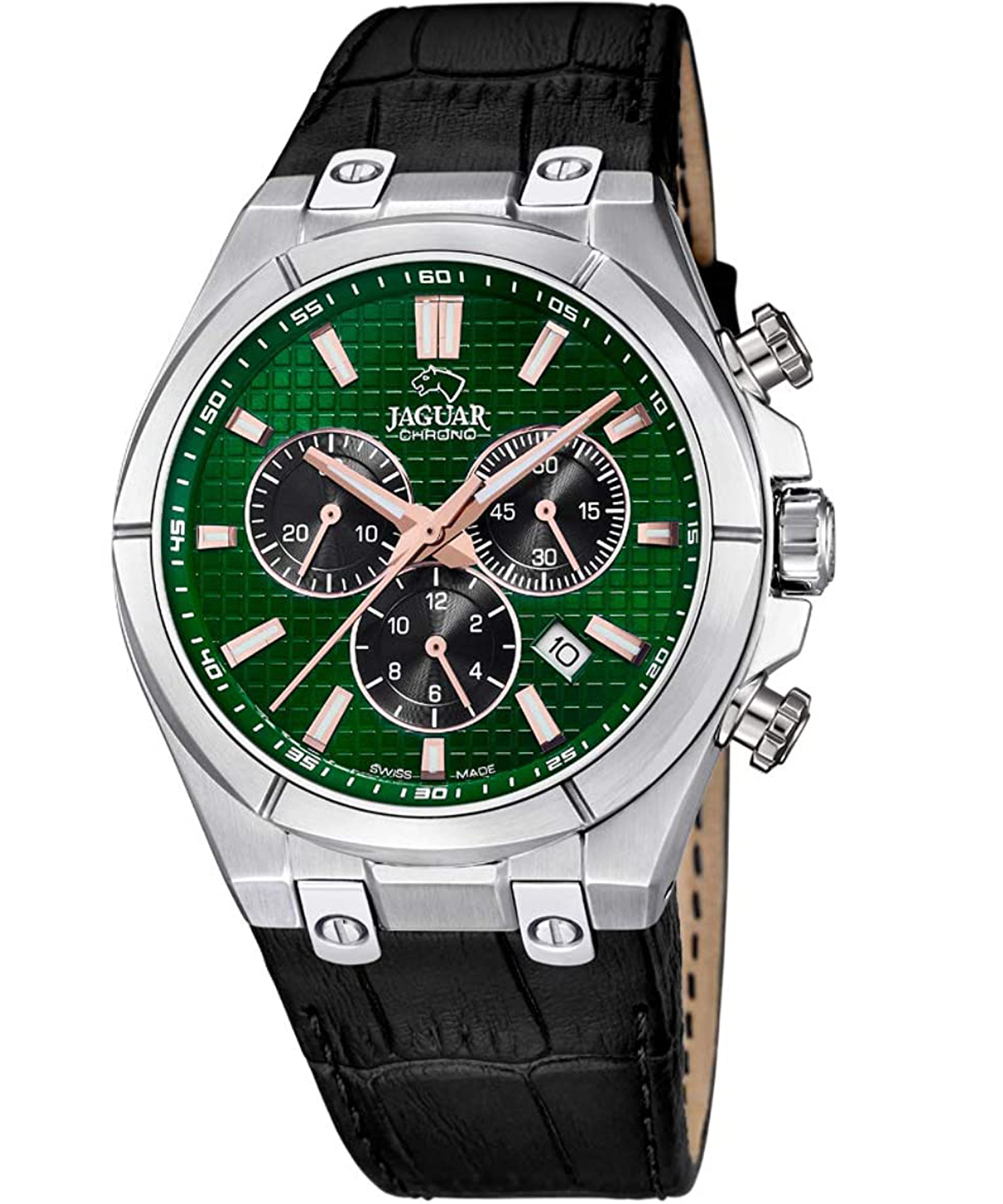 دسته: jaguar, آنالوگ, بند مشکی, تعداد موتور, جنس بند, جنس قاب, رنگ بند, رنگ صفحه, رنگ قاب, ساعت بر اساس برند, ساعت بر اساس جنسیت, سوییس, صفحه سبز, قاب نقره ای, مبدا برند, مردانه, نوع ساعت, یک موتور