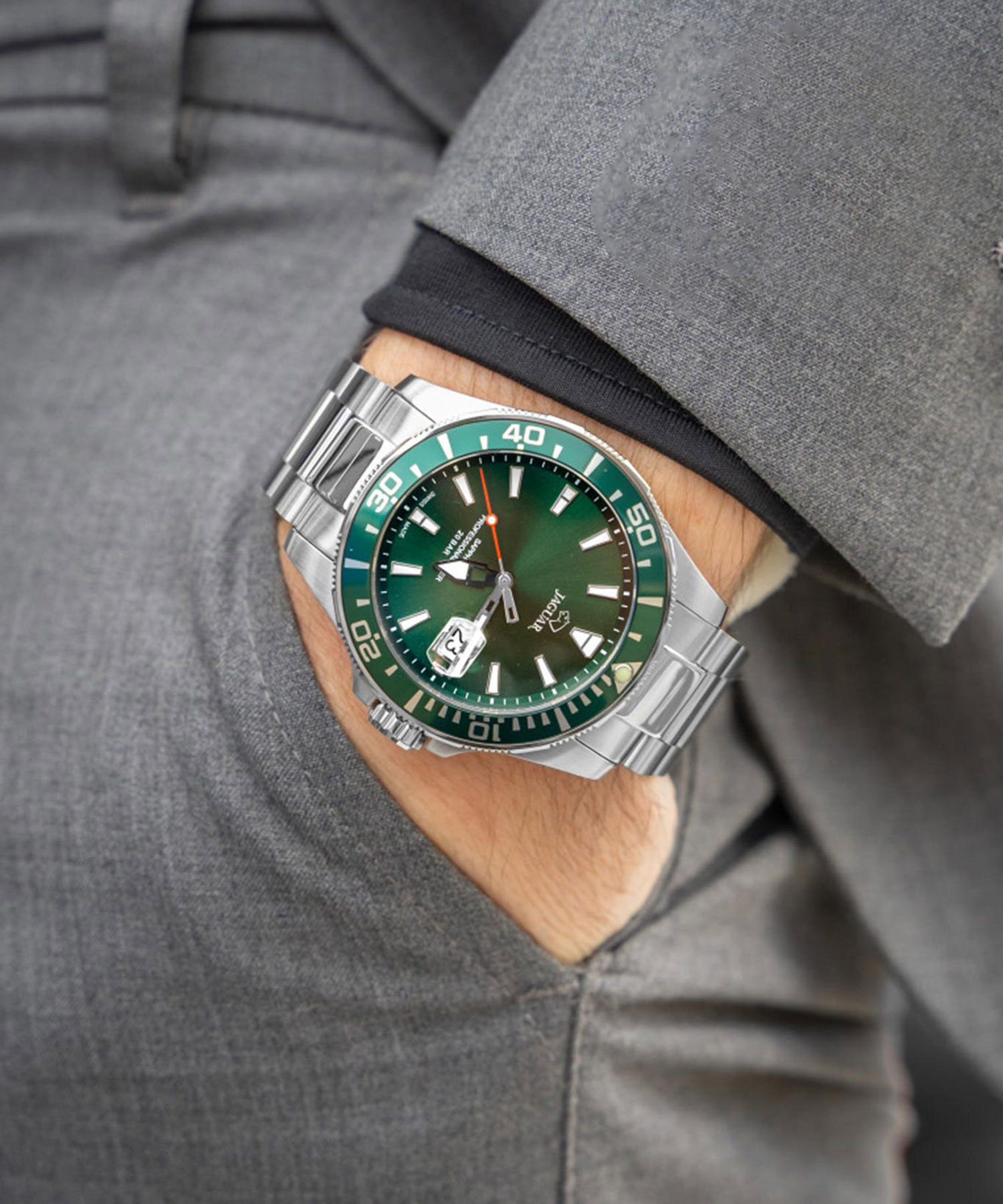 دسته: jaguar, آنالوگ, بند نقره ای, تعداد موتور, جنس بند, جنس قاب, رنگ بند, رنگ صفحه, رنگ قاب, ساعت بر اساس برند, ساعت بر اساس جنسیت, سوییس, صفحه سبز, مبدا برند, مردانه, نوع ساعت, یک موتور