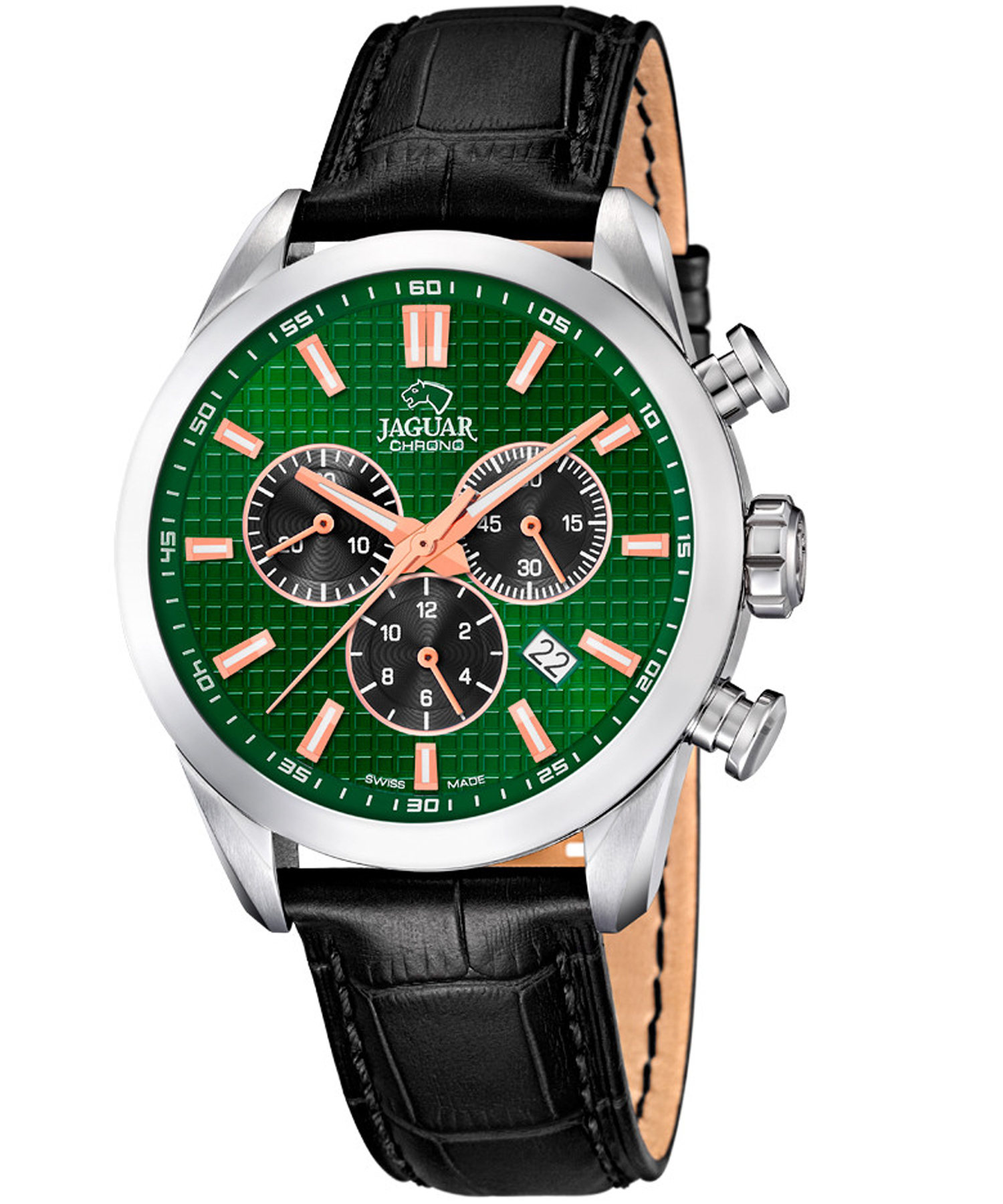 دسته: jaguar, آنالوگ, بند مشکی, تعداد موتور, جنس بند, جنس قاب, رنگ بند, رنگ صفحه, رنگ قاب, ساعت بر اساس برند, ساعت بر اساس جنسیت, سوییس, صفحه سبز, قاب نقره ای, مبدا برند, مردانه, نوع ساعت, یک موتور
