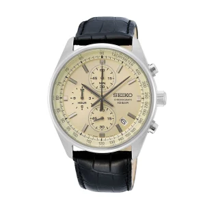 ساعت مچی سیکو مدل SSB383P1سیکو، یک برند معروف و محبوب در زمینه ساعتهای مچی و تجهیزات وابسته به آن می باشد. این شرکت در سال 1881 توسط البرتو سیکو در شهر کوماتو، ژاپن تأسیس شد و از پیشتازان صنعت ساعت سازیست.طراحیهای ساعتهای سیکو اغلب ساده، کلاسیک و البته زیبا هستند. به صورتی است که با طراحیهای مدرن و کلاسیک هماهنگی دارند.ساعتهای سیکو تلفیق هنر، دقت و نوآوریست. سیکو نمادی از زمان و یک علامت شناخته شده از سلیقه و اعتبار است.هر محصول، یک داستان منحصر به فرد از زمان و ذوق طراحی را با خود به ارمغان میآورد. از جنسها و مواد برتر تا طراحیهای شگفتانگیز، هر ساعت سیکو به عنوان یک اثر هنری برجسته شناخته میشود.همچنین، فناوریهای پیشرفته و دقت فوقالعاده در ساعتهای سیکو اطمینان میدهند که شما همواره در کنترل زمان خود باشید.با مجموعهای از ساعتهای متنوع و جذاب، سیکو تجربهای فوقالعاده از زمان و استایل را برای شما فراهم میکند. اکنون، با محصولات سیکو، زمان را به یک سفر استثنایی از زیبایی و علم تبدیل کنید.SeikoGENERAL، مدل های روزمره و ورزش سیکو را تشکیل می دهند. این ساعت ها معمولا از موتور کوارتز بهره می برند و در مدل های تخصصی کرنومتر و نمایش ۲۴ ساعت شبانه روز را برای شما فراهم می کنند.جنس بدنه استیل و تیتانیوم به همراه بند های رابر، چرمی و استیل جنس این مدل ساعت را تشکیل می دهد. سری جنرال قیمت های مقرون به صرفه تری نسبت به دیگر مدل های سیکو دارند.ویژگی های کلیدی ساعت مچی سیکو مدل SSB383P1جنس قاب: استیلجنس بند: چرمیجنس شیشه: هاردلکستکنولوژی موتور: کوارتز