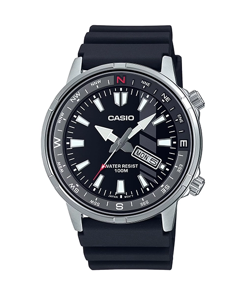 مقاومت در برابر آب تا عمق 100 متری ,بدنه از جنس استیل ضدزنگ ,بند قابل تنظیم: 215-145 میلیمتر ,قاب قطب نما ,نمایشگر روز و تاریخ در محل ساعت 4 ,نمایشگر روز به زبان انگلیسی و اسپانیایی ,وقتنمای معمولی، آنالوگ: 3 عقربه (ساعتشمار، دقیقهشمار، ثانیهشمار) ,دقت: ±20 ثانیه در هر ماه ,عمر تقریبی باتری: 3 سال با باتری SR920SW |