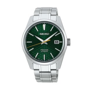 ساعت مچی سیکو مدلSPB169J1سیکو، یک برند معروف و محبوب در زمینه ساعتهای مچی و تجهیزات وابسته به آن می باشد. این شرکت در سال 1881 توسط البرتو سیکو در شهر کوماتو، ژاپن تأسیس شد و از پیشتازان صنعت ساعت سازیست.طراحیهای ساعتهای سیکو اغلب ساده، کلاسیک و البته زیبا هستند. به صورتی است که با طراحیهای مدرن و کلاسیک هماهنگی دارند.ساعتهای سیکو تلفیق هنر، دقت و نوآوریست. سیکو نمادی از زمان و یک علامت شناخته شده از سلیقه و اعتبار است.هر محصول، یک داستان منحصر به فرد از زمان و ذوق طراحی را با خود به ارمغان میآورد. از جنسها و مواد برتر تا طراحیهای شگفتانگیز، هر ساعت سیکو به عنوان یک اثر هنری برجسته شناخته میشود. همچنین، فناوریهای پیشرفته و دقت فوقالعاده در ساعتهای سیکو اطمینان میدهند که شما همواره در کنترل زمان خود باشید.با مجموعهای از ساعتهای متنوع و جذاب، سیکو تجربهای فوقالعاده از زمان و استایل را برای شما فراهم میکند. اکنون، با محصولات سیکو، زمان را به یک سفر استثنایی از زیبایی و علم تبدیل کنید.Seiko Presage، سری ساعت های مچی است که به مناسبت ۱۱۰ همین سالگرد افتتاح، توسط شرکت ساعت سازی ژاپنی Seiko معرفی گردید و تولید می شود. سری Presage ترکیبی از هنر سنتی ژاپن که با طراحی معاصر و فناوری پیشرفته می باشد. مدل های این ساعت ماسب برای مراسم رسمی و استفاده لوکس هستند.ویژگی های کلیدی ساعت مچی سیکو مدل SPB169J1جنس قاب: استیلجنس بند: استیلجنس شیشه: یاقوت کبودتکنولوژی موتور: اتوماتیک