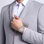 ساعت مچی سیکو مدل SUR523P1سیکو، یک برند معروف و محبوب در زمینه ساعتهای مچی و تجهیزات وابسته به آن می باشد. این شرکت در سال 1881 توسط البرتو سیکو در شهر کوماتو، ژاپن تأسیس شد و از پیشتازان صنعت ساعت سازیست.طراحیهای ساعتهای سیکو اغلب ساده، کلاسیک و البته زیبا هستند. به صورتی است که با طراحیهای مدرن و کلاسیک هماهنگی دارند.ساعتهای سیکو تلفیق هنر، دقت و نوآوریست. سیکو نمادی از زمان و یک علامت شناخته شده از سلیقه و اعتبار است.هر محصول، یک داستان منحصر به فرد از زمان و ذوق طراحی را با خود به ارمغان میآورد. از جنسها و مواد برتر تا طراحیهای شگفتانگیز، هر ساعت سیکو به عنوان یک اثر هنری برجسته شناخته میشود.همچنین، فناوریهای پیشرفته و دقت فوقالعاده در ساعتهای سیکو اطمینان میدهند که شما همواره در کنترل زمان خود باشید.با مجموعهای از ساعتهای متنوع و جذاب، سیکو تجربهای فوقالعاده از زمان و استایل را برای شما فراهم میکند. اکنون، با محصولات سیکو، زمان را به یک سفر استثنایی از زیبایی و علم تبدیل کنید.SeikoGENERAL، مدل های روزمره و ورزش سیکو را تشکیل می دهند. این ساعت ها معمولا از موتور کوارتز بهره می برند و در مدل های تخصصی کرنومتر و نمایش ۲۴ ساعت شبانه روز را برای شما فراهم می کنند.جنس بدنه استیل و تیتانیوم به همراه بند های رابر، چرمی و استیل جنس این مدل ساعت را تشکیل می دهد. سری جنرال قیمت های مقرون به صرفه تری نسبت به دیگر مدل های سیکو دارند.ویژگی های کلیدی ساعت مچی سیکو مدل SUR523P1جنس قاب: استیلجنس بند: استیلجنس شیشه: یاقوت کبودتکنولوژی موتور: کوارتز