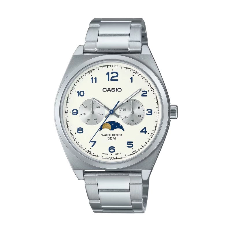 | سایر ویژگی ها | سری STANDARDزمانسنجی منظم آنالوگ: 3 عقربه (ساعت، دقیقه و ثانیه)3 نمایشگر (نمایش تاریخ، روزهای هفته و شاخص فاز ماه) |