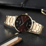 | سایر ویژگی ها | بند و بدنه با پوشش یون طلاییزمانسنجی منظم آنالوگ: 3 عقربه (ساعت، دقیقه و ثانیه) |