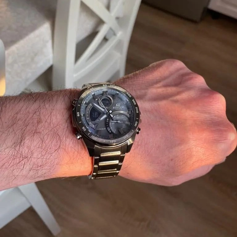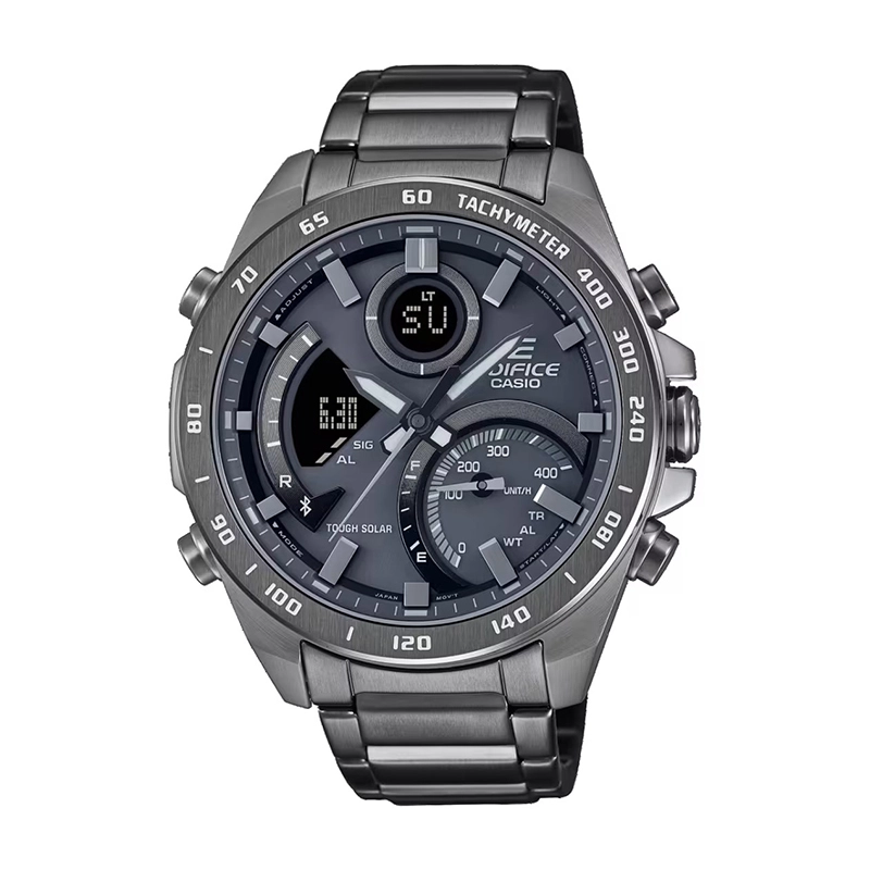 عضو سری ECB-900 از ساعتهای EDIFICEمناسب برای سفر و ماجراجویی – دارای طراحی مناسب برای علاقهمندان به مسابقات خودرورانیباتری خورشیدی با فناوری Tough Solarبدنه و بند دارای روکش آیون به رنگ خاکستریدارای سنسور تاچیمتر (سرعتسنج)اتصال به تلفنهمراه از طریق بلوتوث (به همراه قابلیت Find My Phone)تنظیم خودکار و راحت ساعتدارای زمان بیش از 300 شهر دنیاقابلیت انتقال داده کرنومتر به تلفنهمراهعقربهها بهطور خودکار کنار میروند تا نمایشگر دیجیتال واضحتر دیده شودفرمت 12/24 ساعتهنمایش روزهای هفته به شش زبان متفاوتنمایش میزان شارژ باقیمانده باتریروشنشدن نور صفحه با چرخش دستزمانسنجی منظم:آنالوگ: سه عقربه ثانیه، دقیقه و ساعتشمار (حرکت عقربه دقیقهشمار هر 10 ثانیه) – صفحه دارای یک بخش برای نمایش سرعتدیجیتال: ساعت، دقیقه، ثانیه، بعد از ظهر، ماه، تاریخ، روز |
