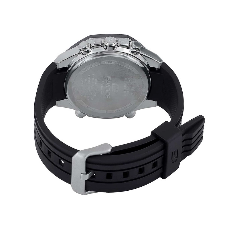 | سایر ویژگی ها | عضو کلکسیون ECB-900 از سری ساعتهای EDIFICEمناسب ورزشهای موتوریاتصال به تلفن همراه (به همراه قابلیت Find your phone)بزل مشکی رنگ با روکش آیون (Ion)قابلیت جابجایی نمایش تاریخ و ماه در صفحه دیجیتالنمایش ساعت به فرمت 12/24 ساعتهعقربههای شبتاببه راحتی در شب دیده میشود (فناوری Neobrite)قابلیت جابجایی عقربه برای ایجاد دید بهتر از صفحه دیجیتالنشاندادن میزان شارژ باقیماندهدارای عقربه برای تایمر شمارش معکوسانتقال داده کرنومتر به تلفن همراهدسترسی به زمان بیش از 300 شهر و بروزرسانی خودکار زمان (در صورت لینکشدن با نرمافزار)پیدا کردن تلفنهمراه با فشردن یک دکمه ساعتزمانسنجی منظم:آنالوگ: شامل سه عقربه ثانیه، دقیقه و ساعتشمار (حرکت عقربه دقیقهشمار هر دخ ثانیه) – صفحه دارای یک بخش برای نمایش سرعتدیجیتال: نمایش ساعت، دقیقه، ثانیه، بعد از ظهر، ماه، تاریخ و روز |