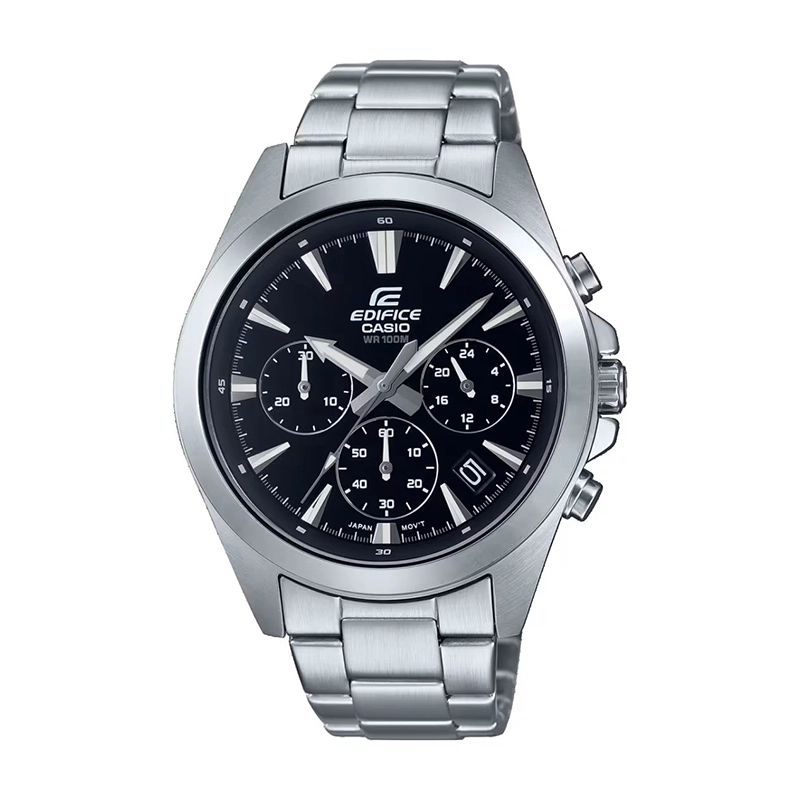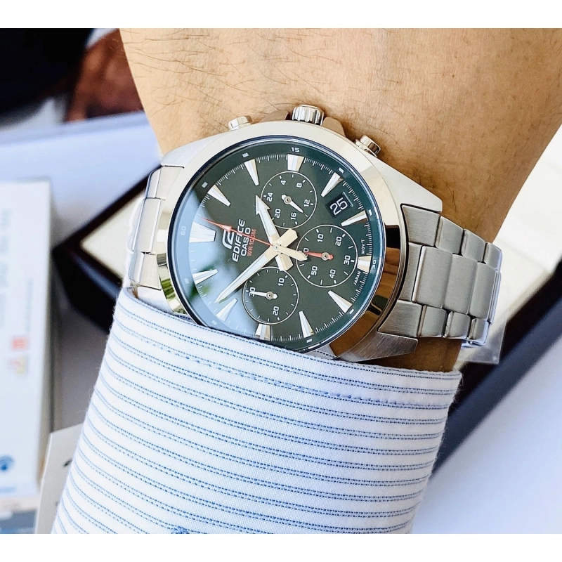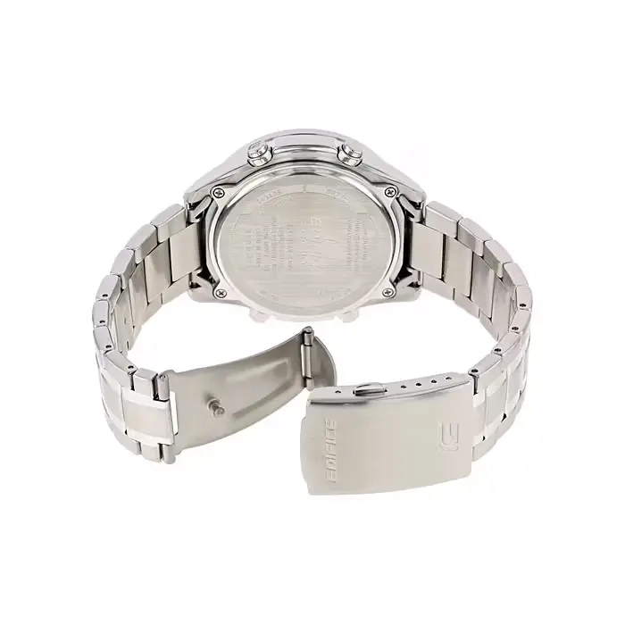 عضو کلکسیون Standard Chronograph از سری ساعت‌های EDIFICEزمان‌سنجی منظم شامل 3 عقربه ثانیه، دقیقه و ساعت‌شمار (دو عقربه ثانیه و دقیقه‌شمار شب‌تاب)صفحه دارای سه بخش برای نمایش ساعت به فرمت 24 ساعته و نمایش ثانیه و دقیقه کرنومتر