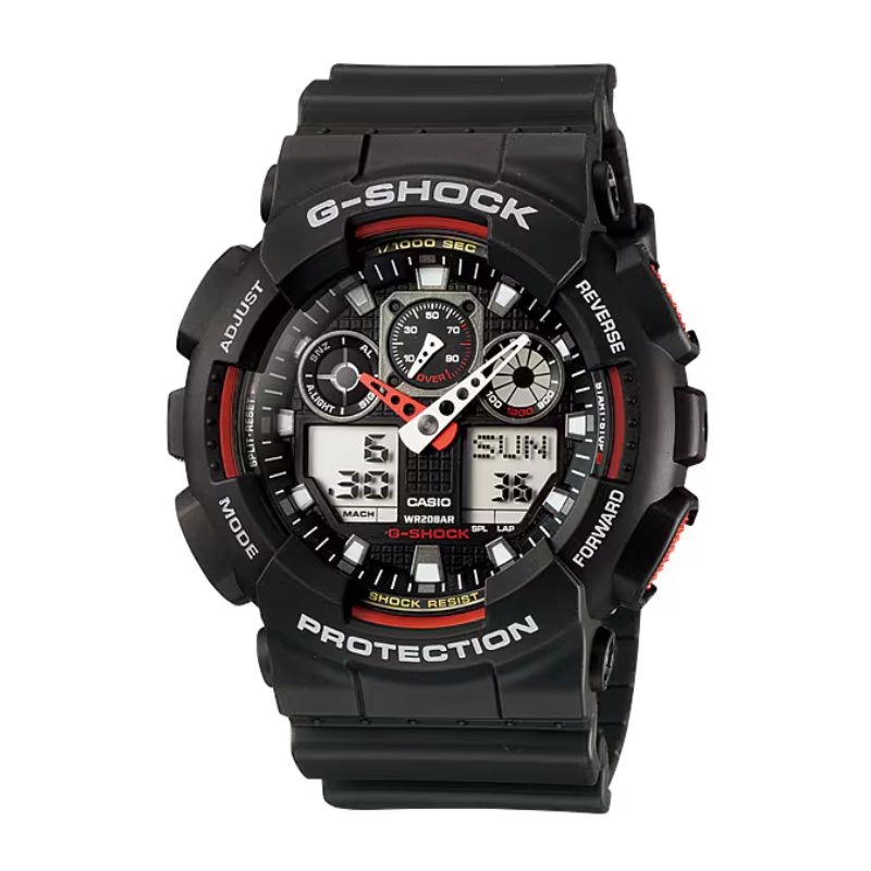 | سایر ویژگی ها | مناسب برای ورزشهای مخاطرهآمیز و هیجان انگیز (extreme sports)سری GA-100فرمت 12/24 ساعتهزمانسنجی منظم آنالوگ: 2 عقربه ساعتشمار و دقیقهشمار (عقربهها هر 20 ثانیه حرکت میکنند)، 1 نمایشگر (سرعت)دیجیتال: ساعت، دقیقه، ثانیه، بعدازظهر/قبلازظهر، ماه، تاریخ، روزهای هفته |