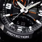 | سایر ویژگی ها | شیشه کرویهشدار باتری در حالت کمفرمت 12/24 ساعتهزمانسنجی منظم:آنالوگ: 3 عقربه ساعتشمار، دقیقهشمار (عقربه هر 20 ثانیه حرکت میکند) و ثانیهشماردیجیتال: ساعت، دقیقه، ثانیه، عصر، ماه، تاریخ، روز |